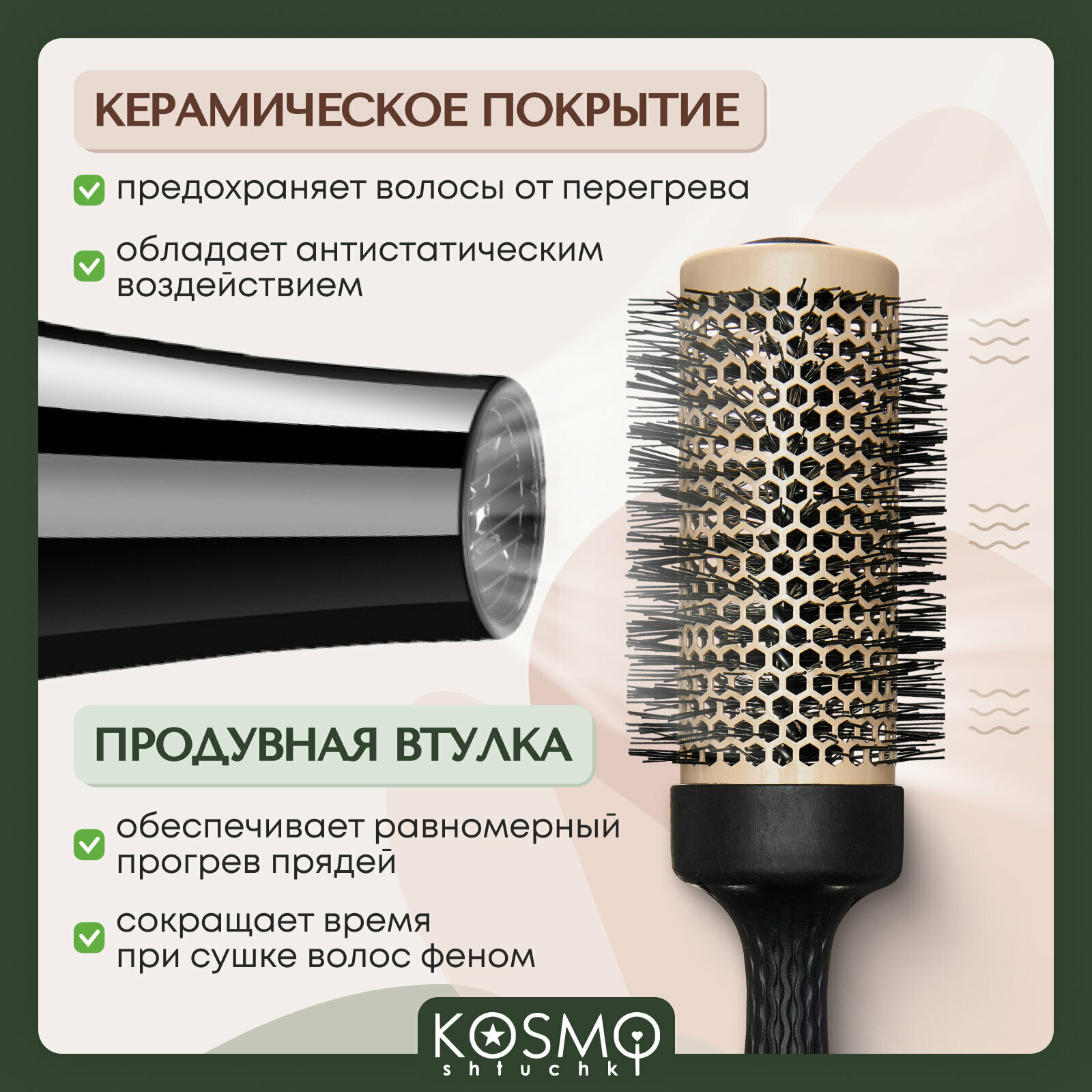 Купить KosmoShtuchki Термобрашинг с керамическим покрытием 44 мм БИО (черный), брашинг для укладки волос