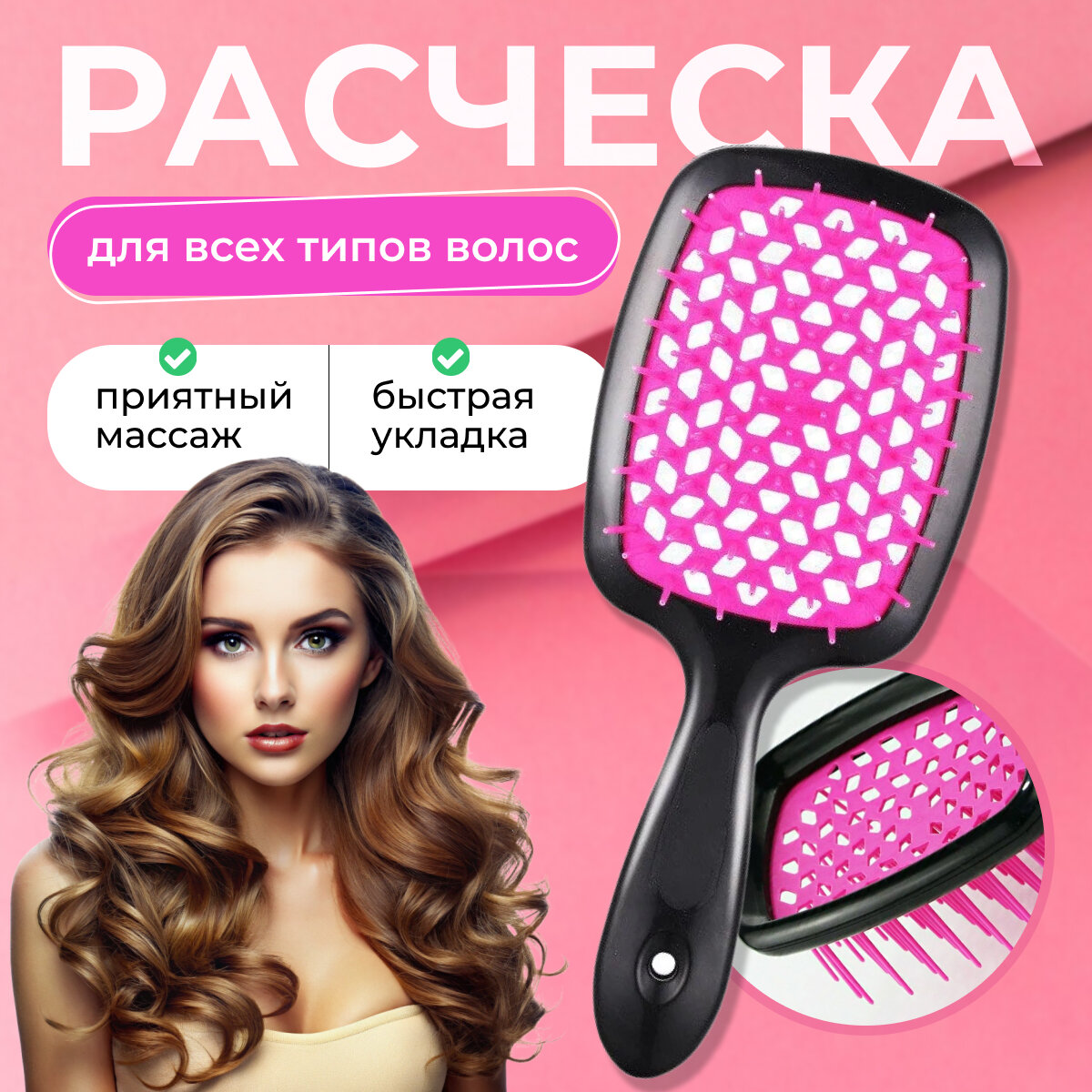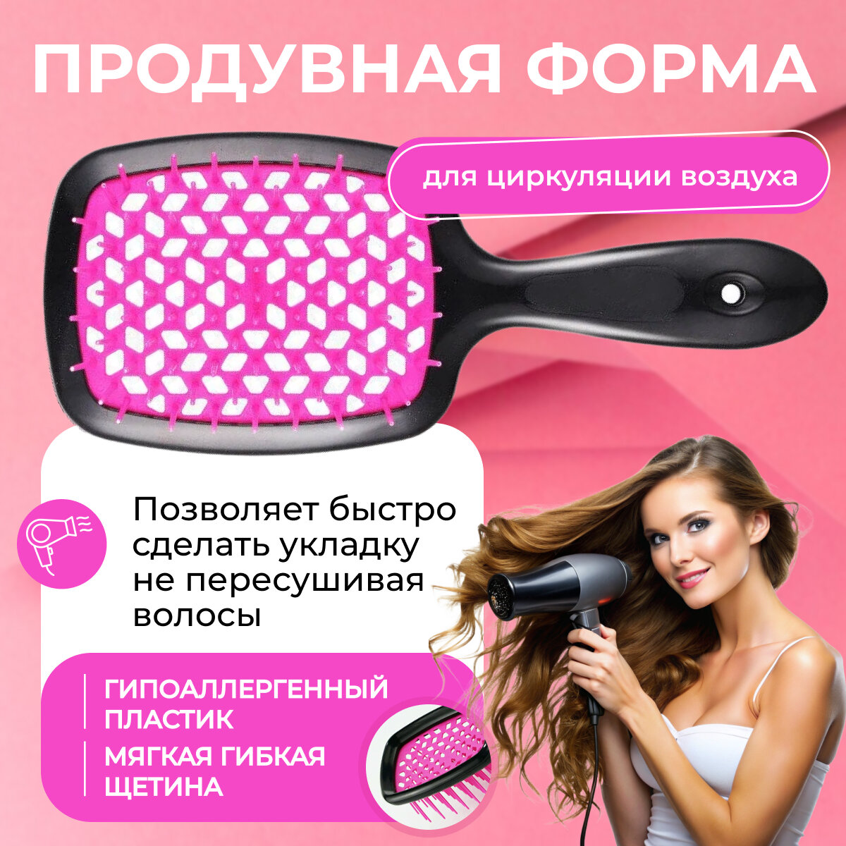 Расческа для мокрых волос, массажная продувная расческа для сухих и влажных волоc, розовая, Universal-Sale интересное: