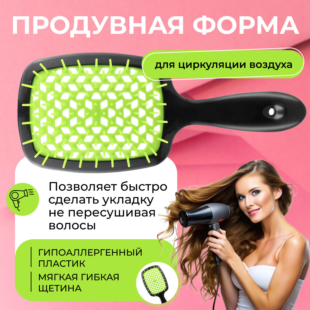 Расческа для мокрых волос, массажная продувная расческа для сухих и влажных волоc, зеленая, Universal-Sale интересное: