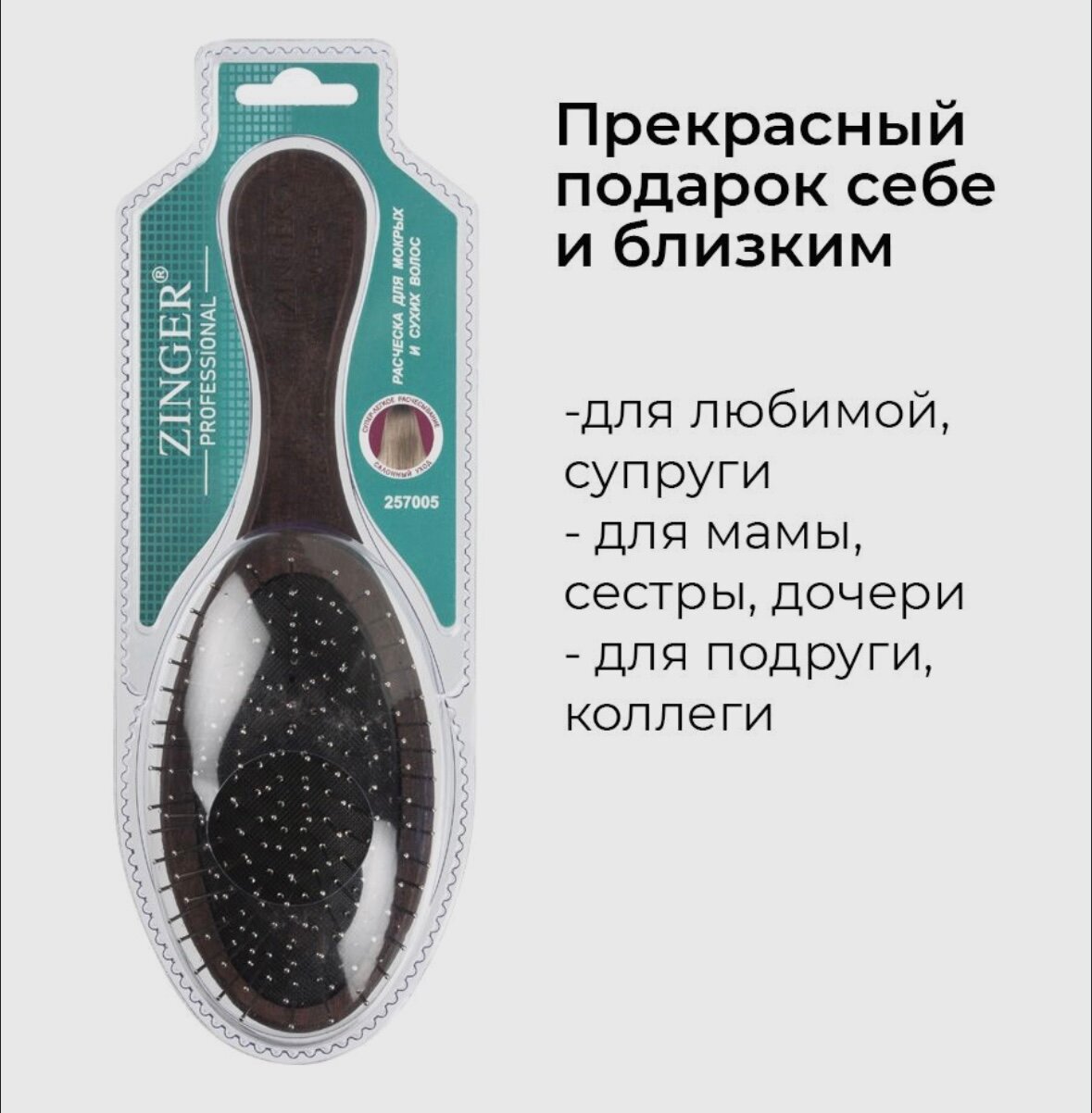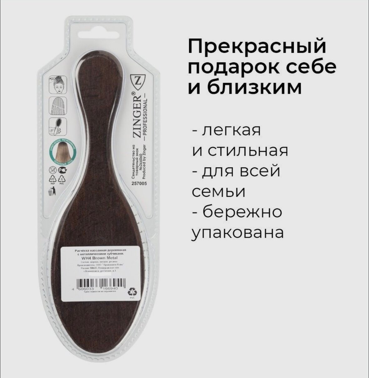 Zinger Расческа WH-4 массажная деревянная с металлическими зубьями,щетка для распутывания волос и массажа головы интересное: