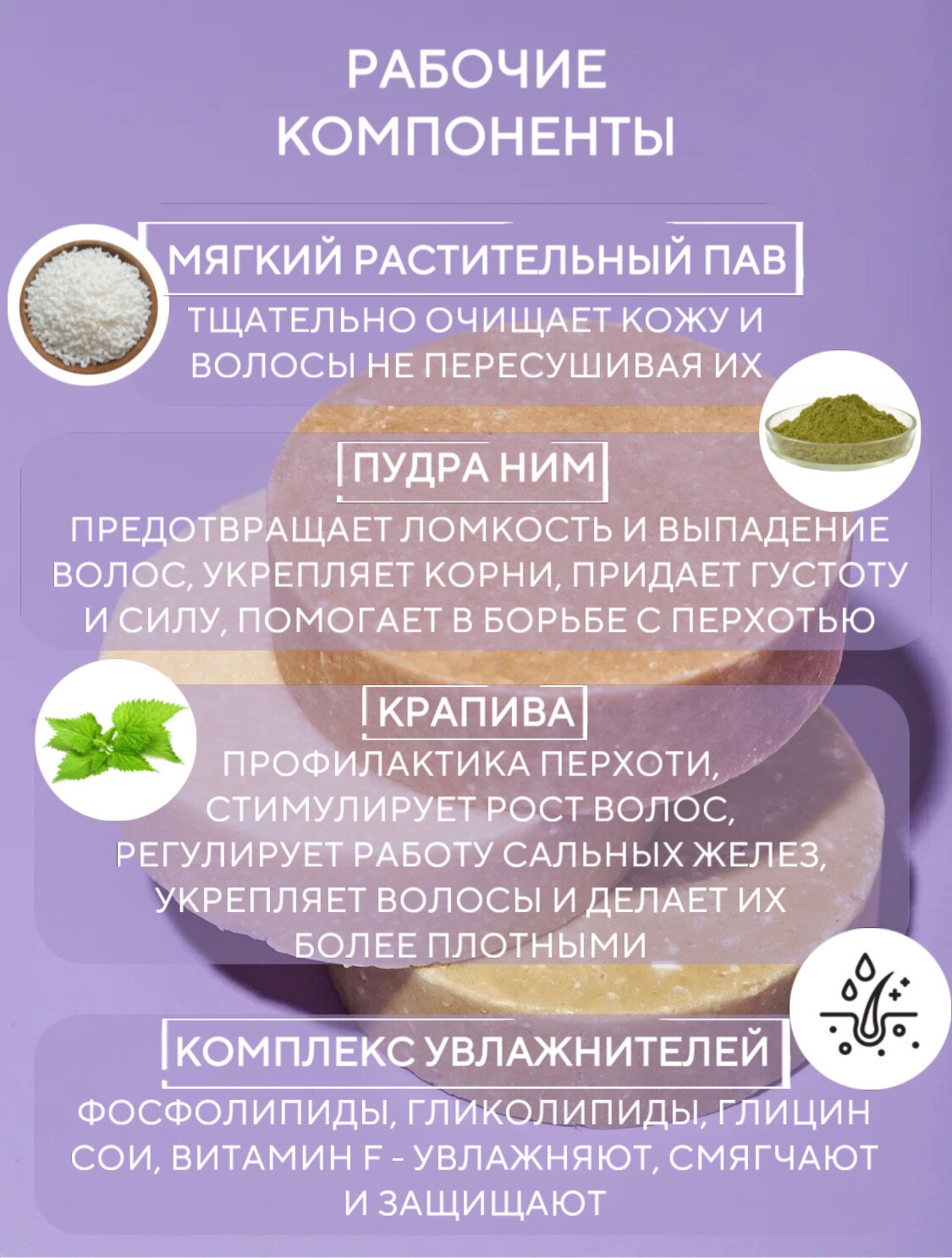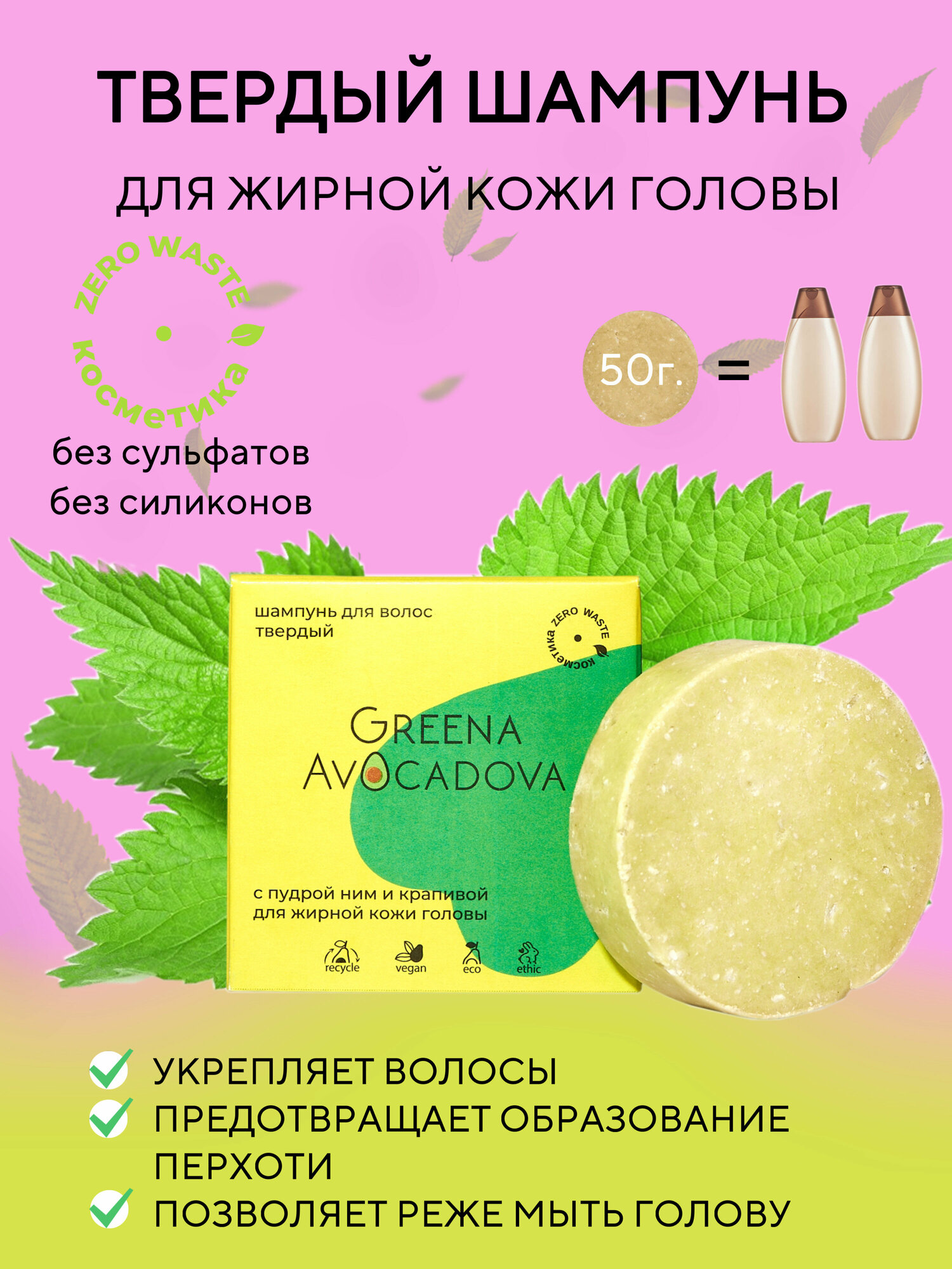Твердый шампунь для жирных волос с крапивой и пудрой ним интересное:
