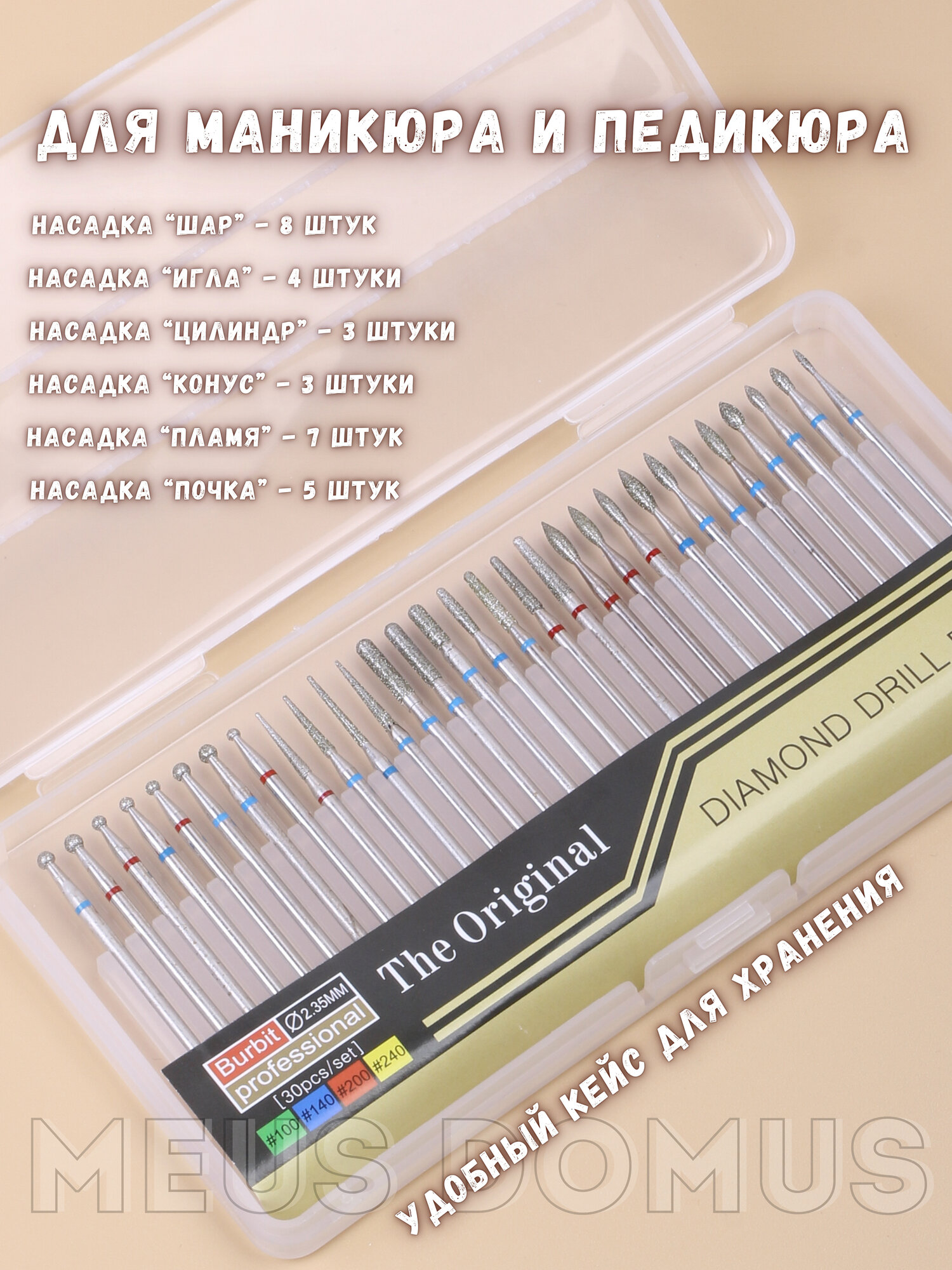 | Дополнительная информация | Набор разнообразных фрез для маникюра и педикюра |