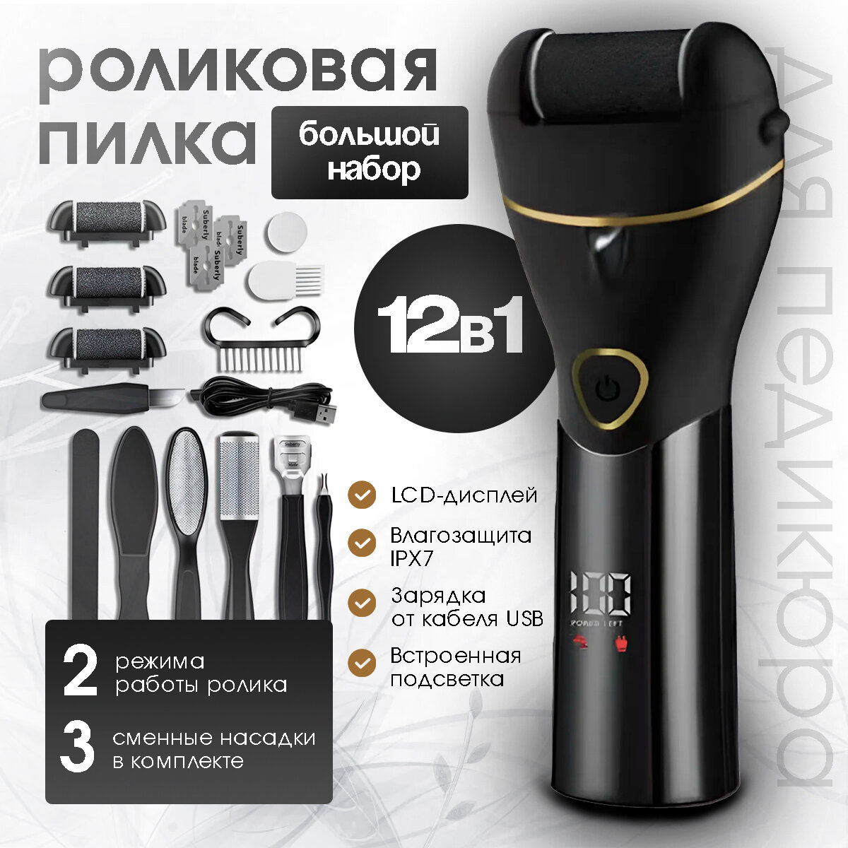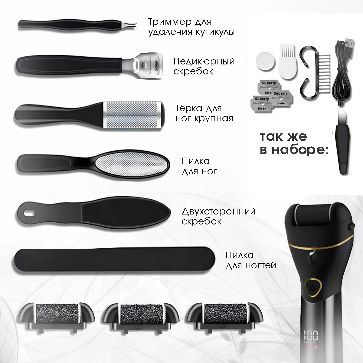 Электрическая беспроводная роликовая пилка для пяток, электропилка для педикюра, педикюрный домашний аппарат для ног, Zur-Kibet интересное: