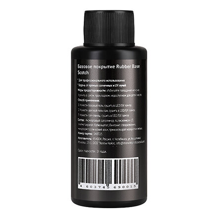 | Способ применения | подготавливаем ногтевую пластину, используя пилку мягкой абразивности(баф). Обезжириваем и наносим праймер. Наносим тонким слоем базу, при необходимости делаем выравнивание ногтевой пластины. Время полимеризации в UV-лампе - 1 минута, в LED-лампе - 30 секунд |