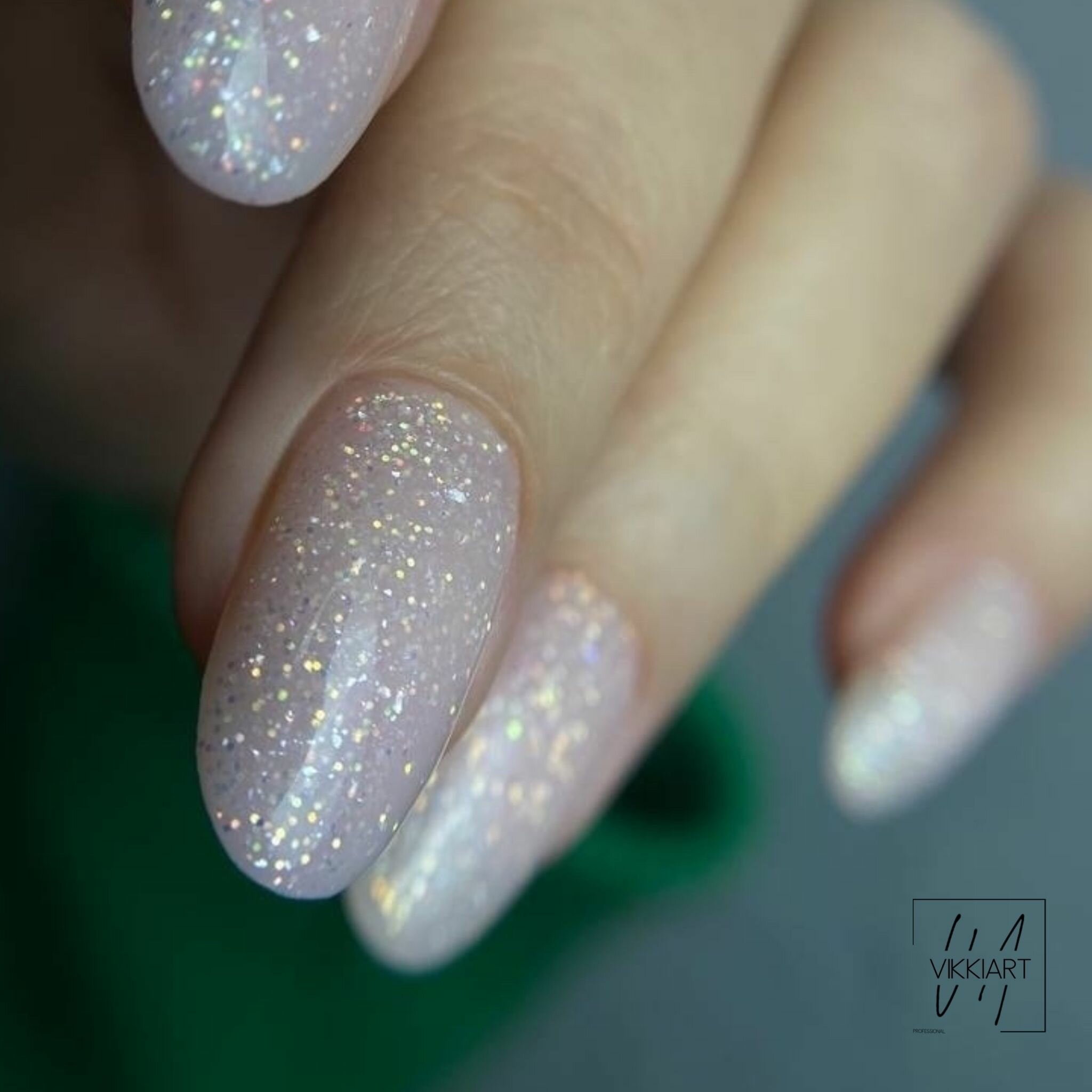 VIKKIART Shimmer Shine Frost, 50 мл / База для гель лака белая полупрозрачная камуфлирующая каучуковая с блестками, молочная основа для гель лака