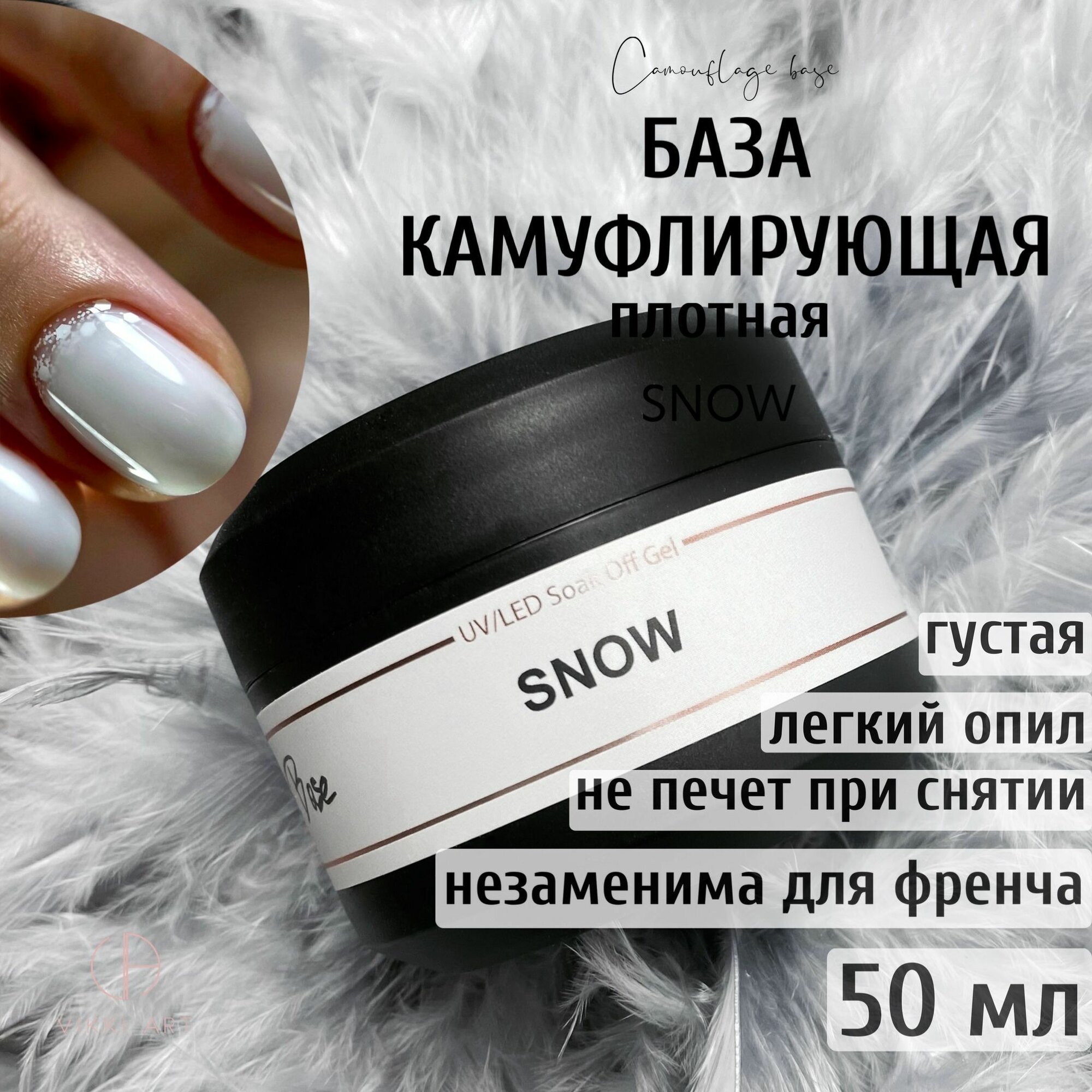 Купить VIKKIART Snow, 50 мл / База для гель-лака белая плотная камуфлирующая каучуковая