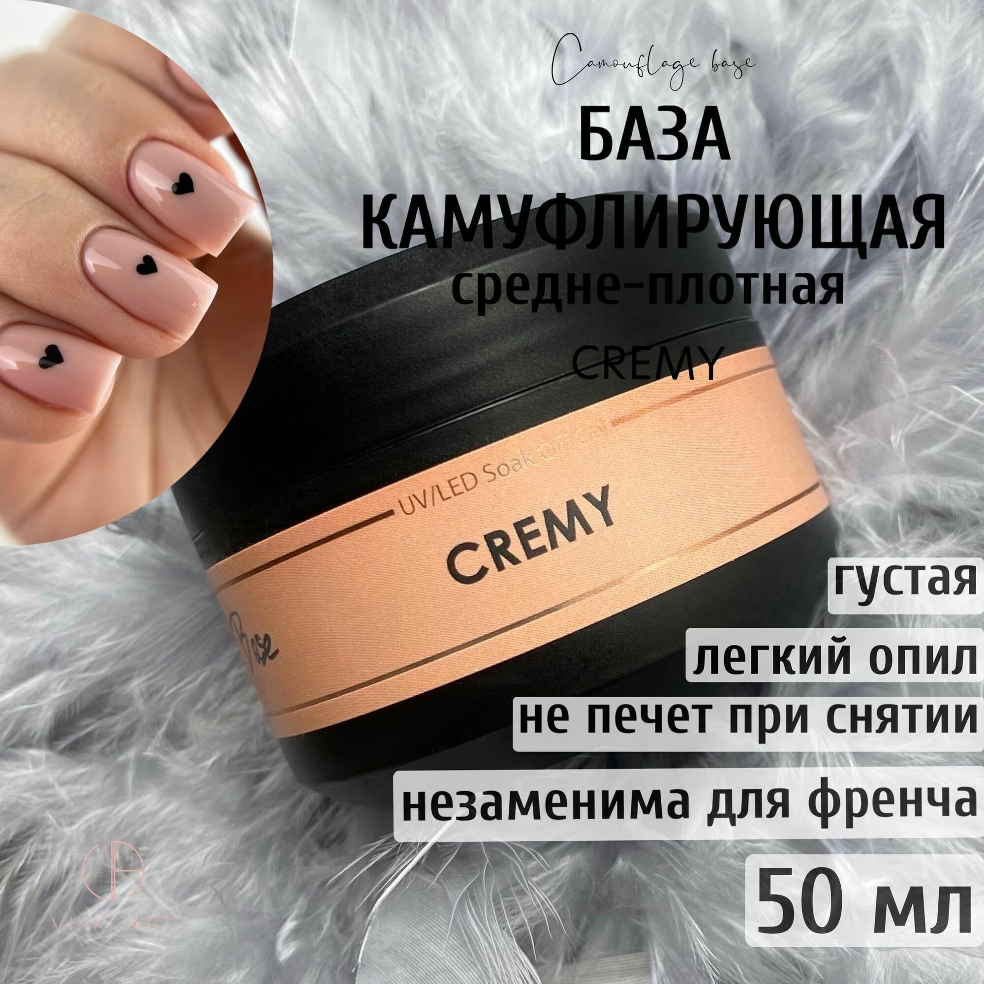 Купить VIKKIART Cremy, 50 мл / База для ногтей бежевая камуфлирующая каучуковая