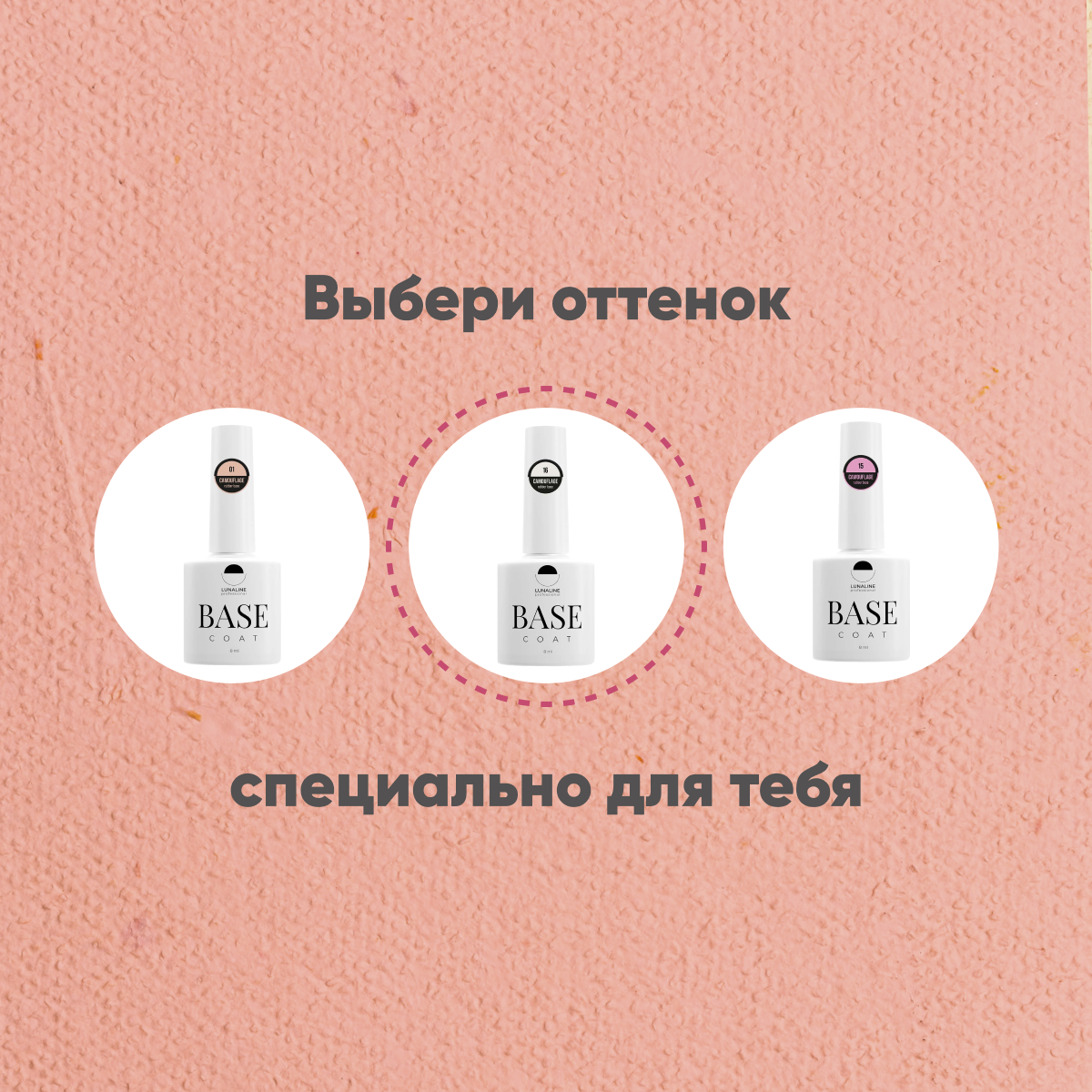База для ногтей LunaLine Camouflage Rubber каучуковая, камуфлирующая, 16, 8 мл.