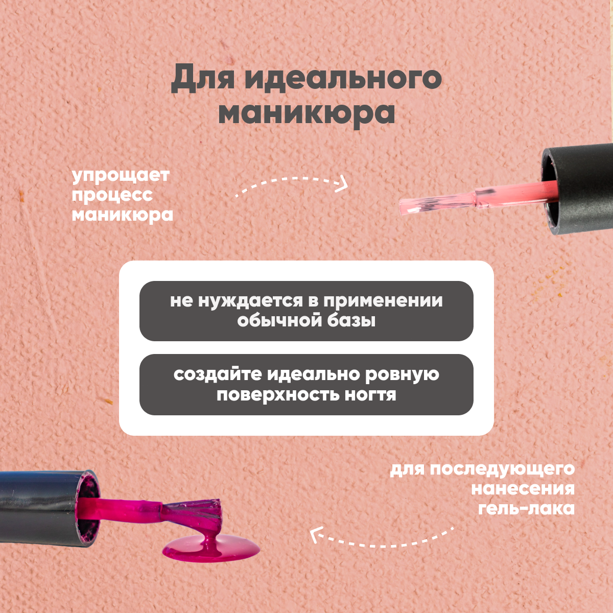 | Способ применения | Нанести на ногтевую пластину тонким слоем с помощью кисти. Затем база высыхает под ультрафиолетовой лампой. Затем можно наносить гель-лак или другие цветные покрытия |