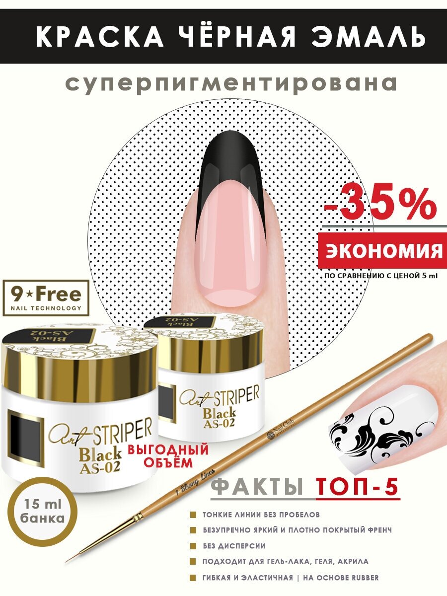 Nail Club professional Гель-краска без липкого слоя для тонких и суперплотных линий, цвет черный AS-02 Black, 15 мл. интересное: