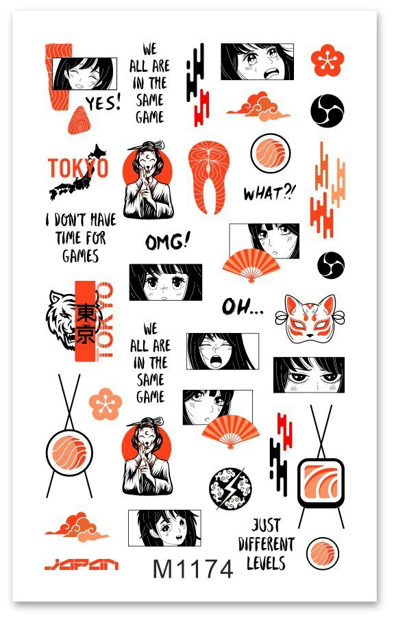 Купить Наклейки слайдеры для ногтей Аниме набор
