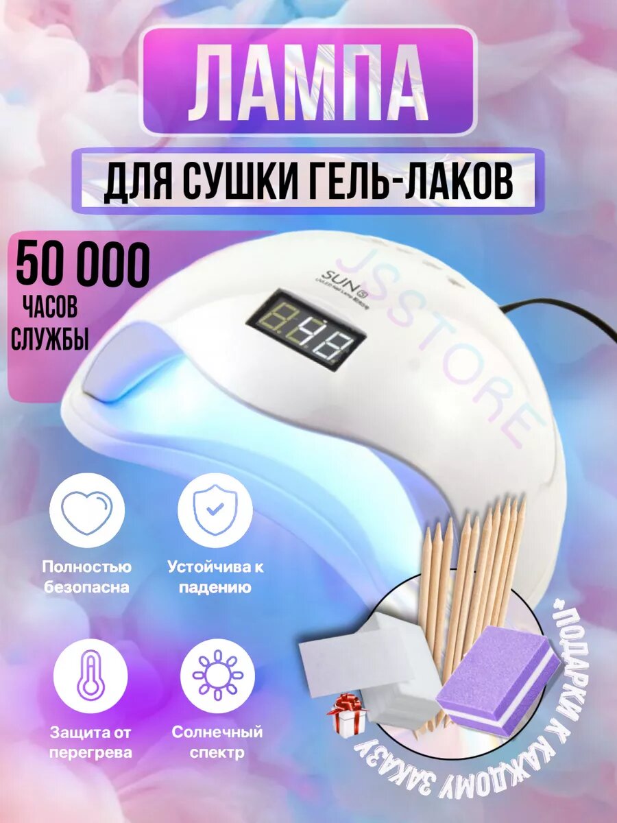 SUN Лампа для сушки ногтей X, 54 Вт, LED-UV белый + Пилочки для маникюра 10 шт / Набор для маникюра Лампа + пилочки для ногтей