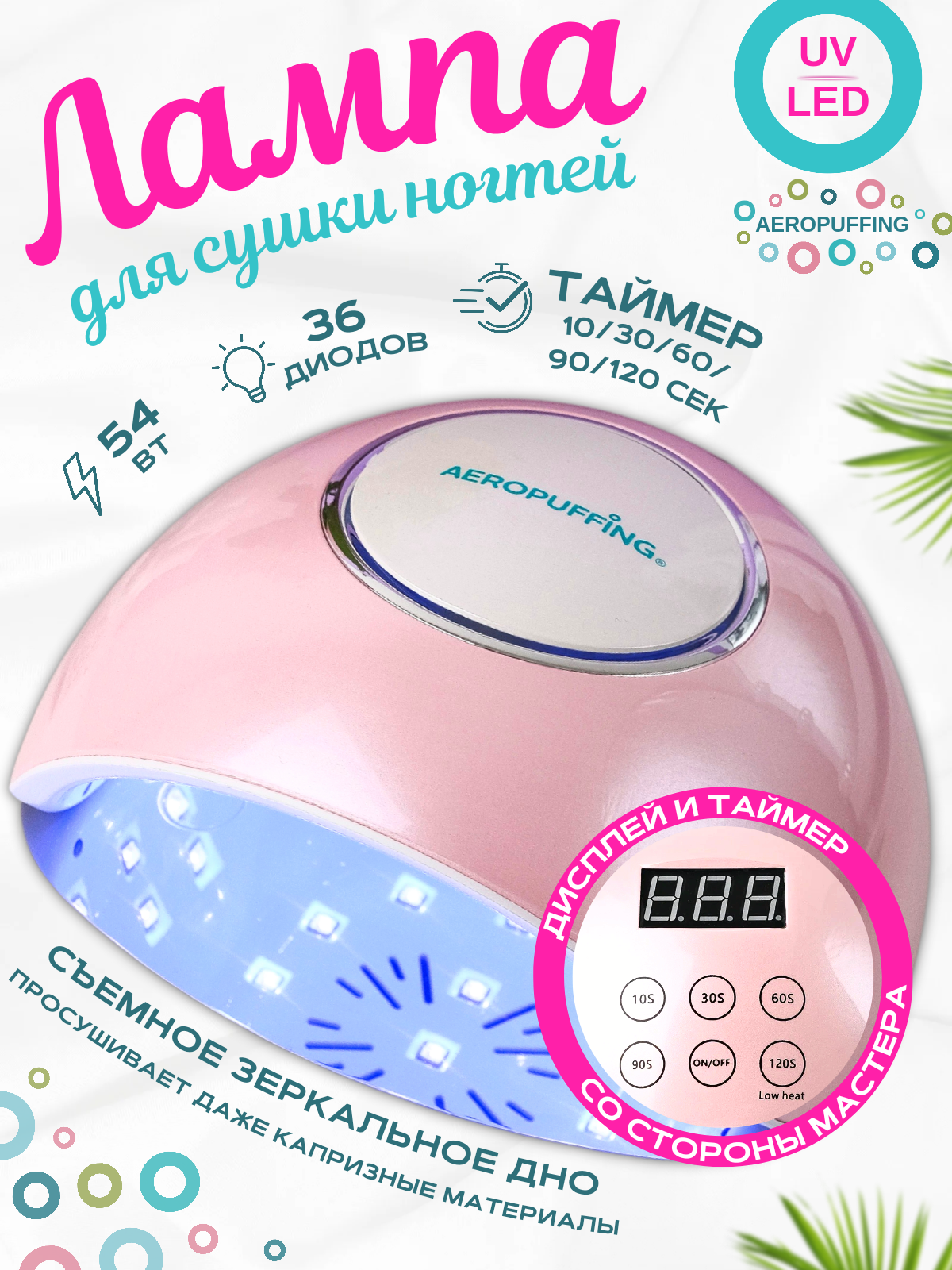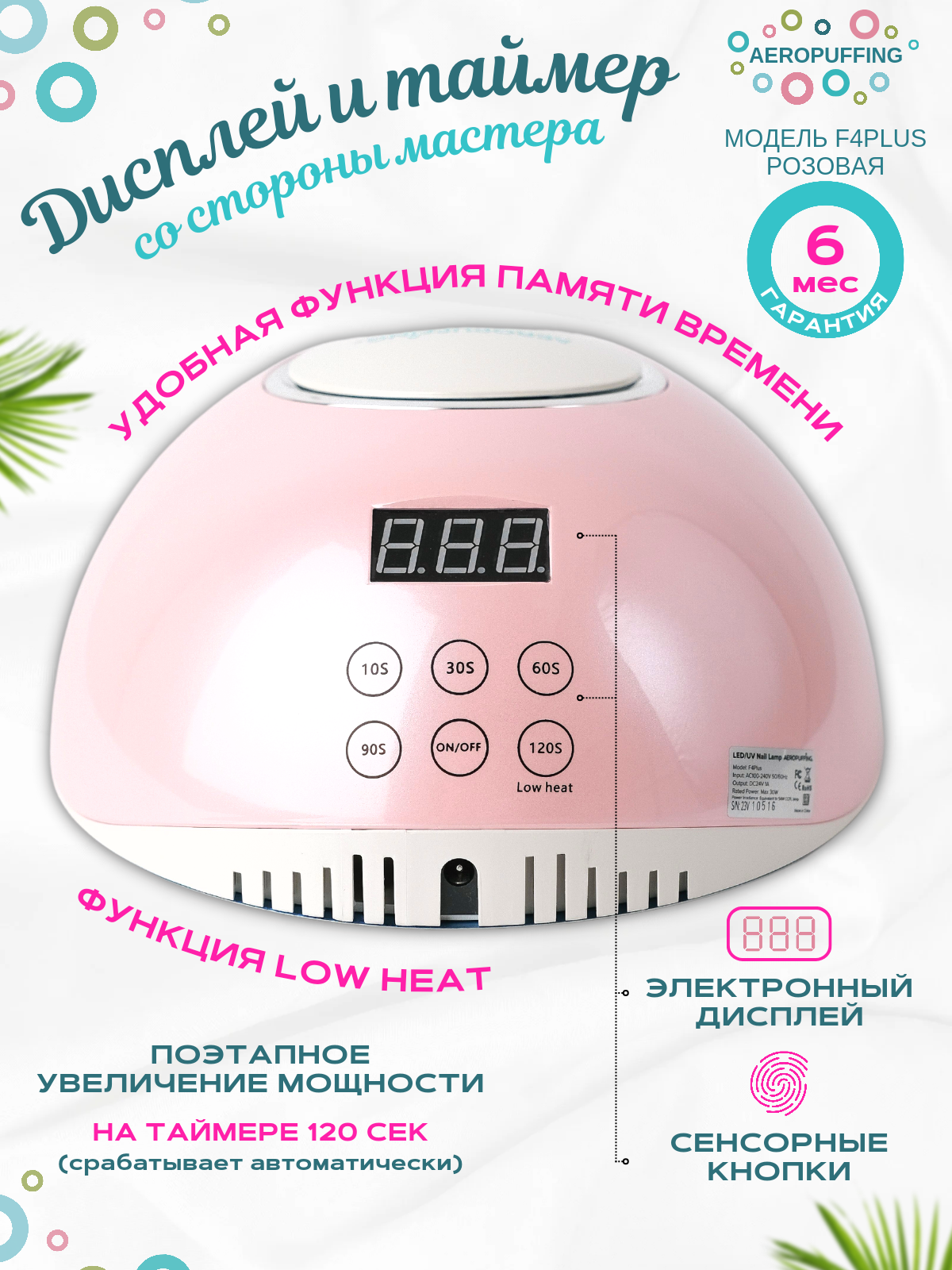 F4Plus Nail Lamp-гибридная UV/LED лампа для сушки ногтей, 54Вт/розовая интересное: