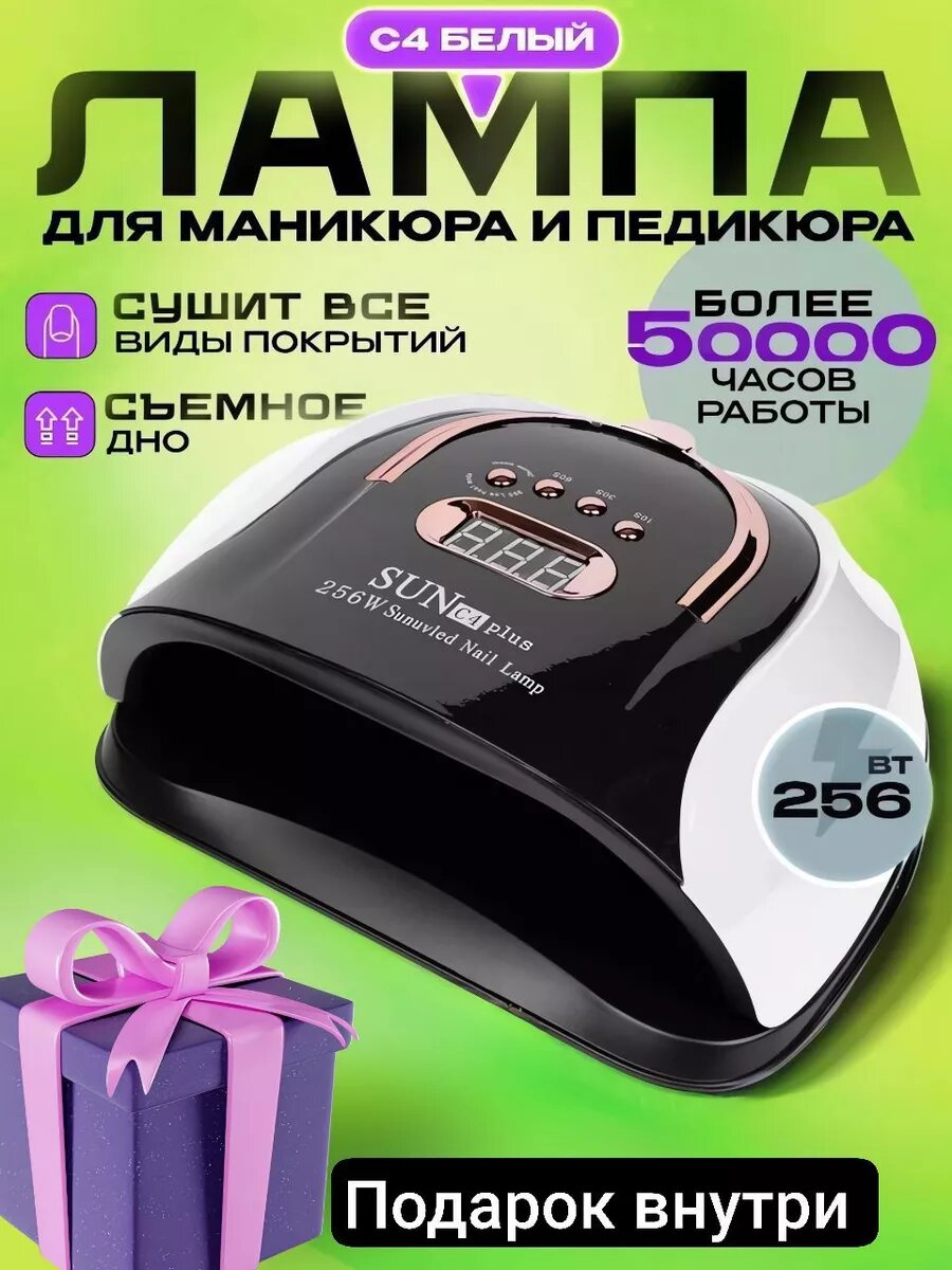 Лампа для маникюра SUN С4 Plus 256 Вт, yф Лампа для сушки ногтей педикюра, профессиональная мини - Белый интересное:
