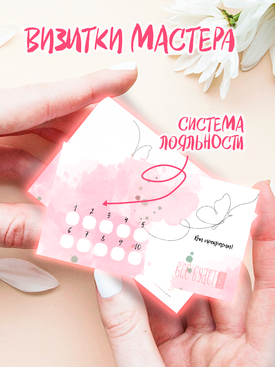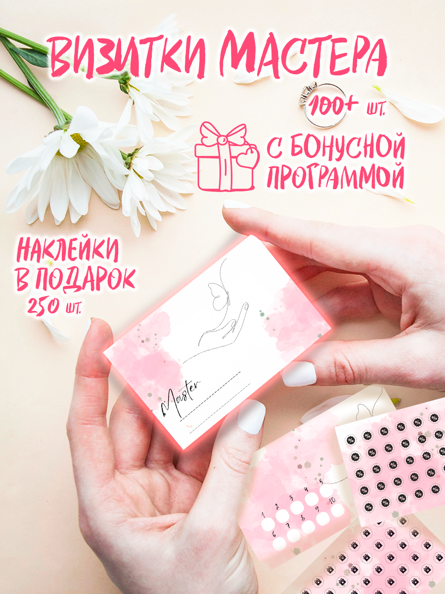 Визитки мастера с наклейками лояльности интересное: