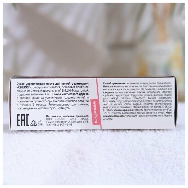 MILV Сухое укрепляющее масло для ногтей с шиммером «CHERRY». 15 мл интересное: