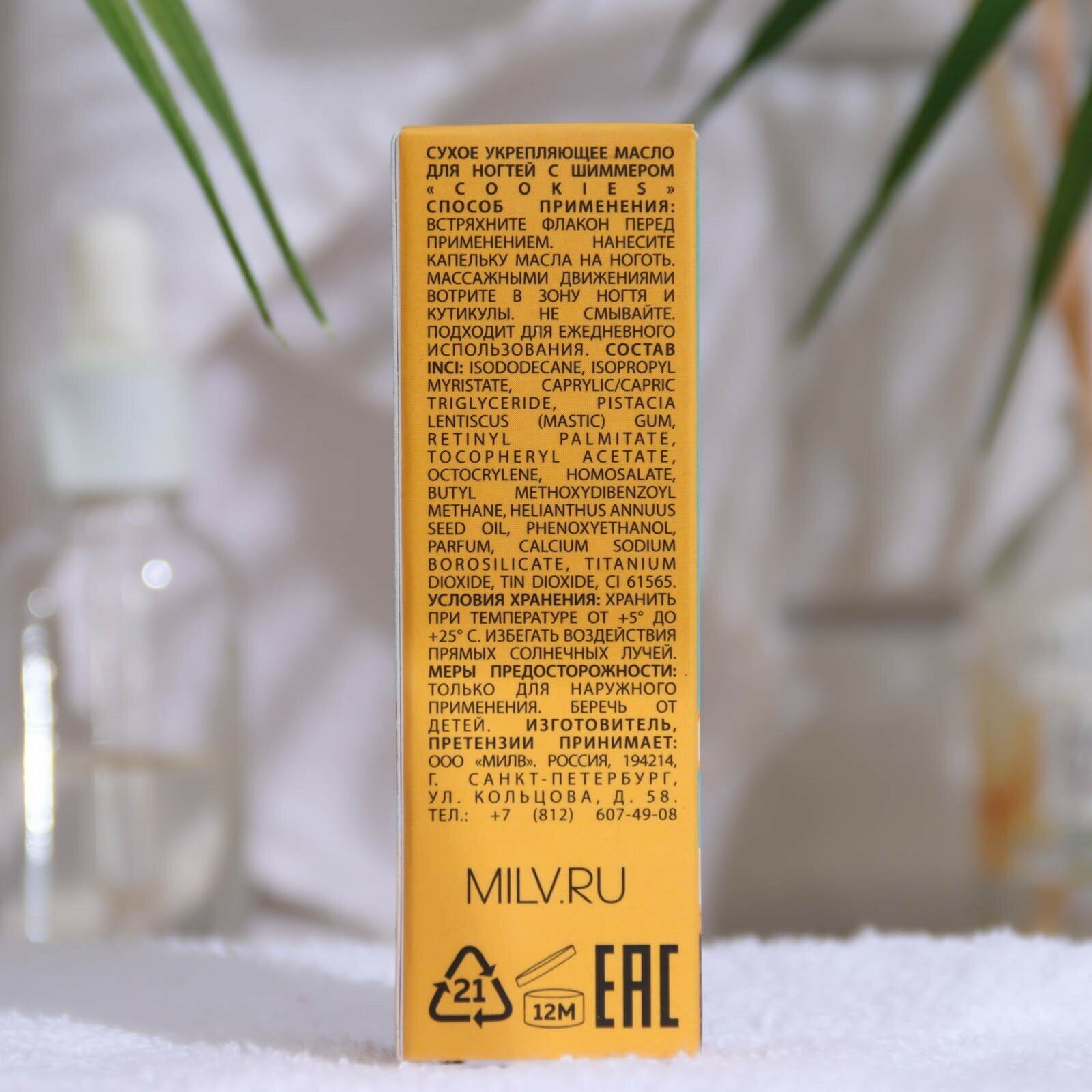 MILV Сухое укрепляющее масло для ногтей с шиммером «COOKIES». 15 мл интересное: