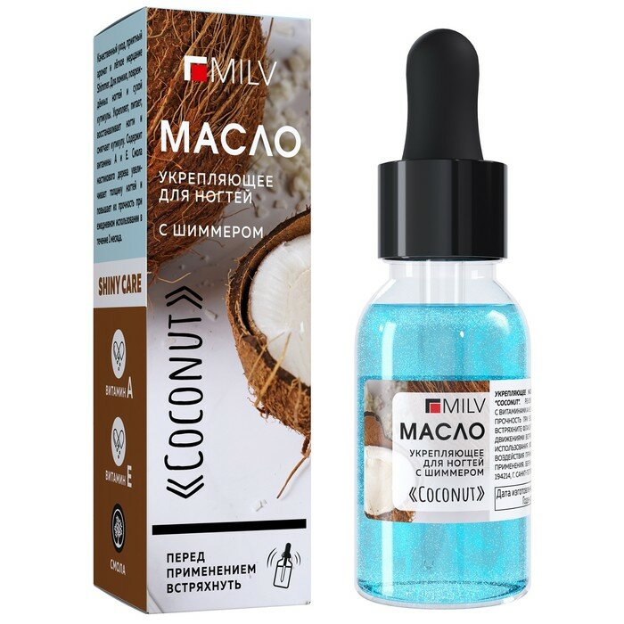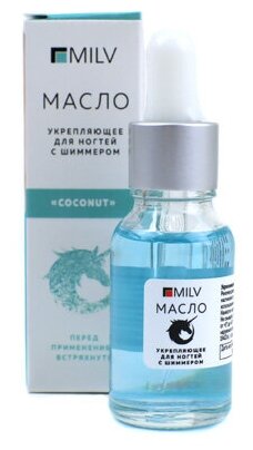 MILV Укрепляющее масло для ногтей со смолой мастикового дерева и шиммером «COCONUT». 15 мл интересное: