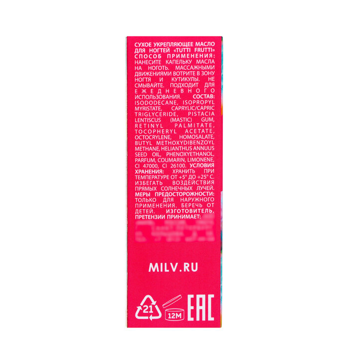 MILV Сухое укрепляющее масло для ногтей «TUTTI FRUTTI». 15 мл интересное: