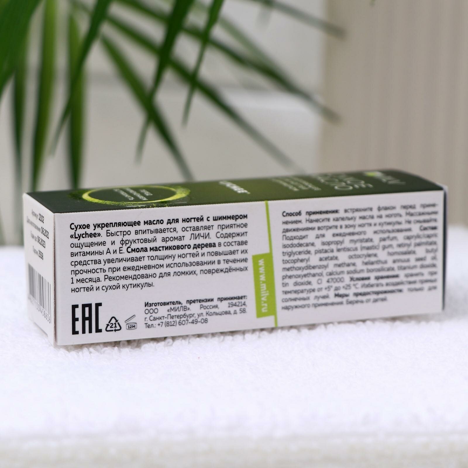 Купить MILV Сухое укрепляющее масло для ногтей с шиммером «LYCHEE». 15 мл