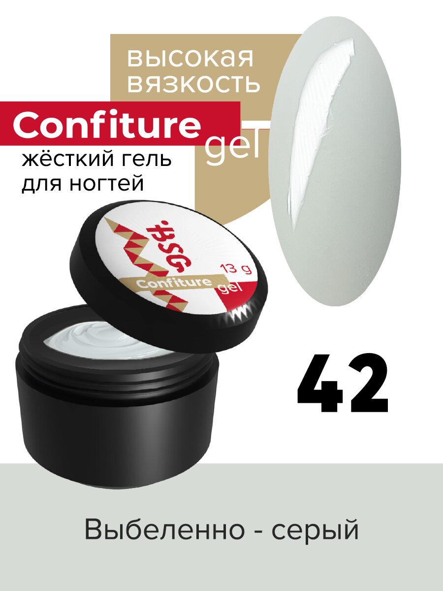 Купить BSG Жёсткий гель для наращивания Confiture №42 высокая вязкость - Выбеленно-серый (13 г)