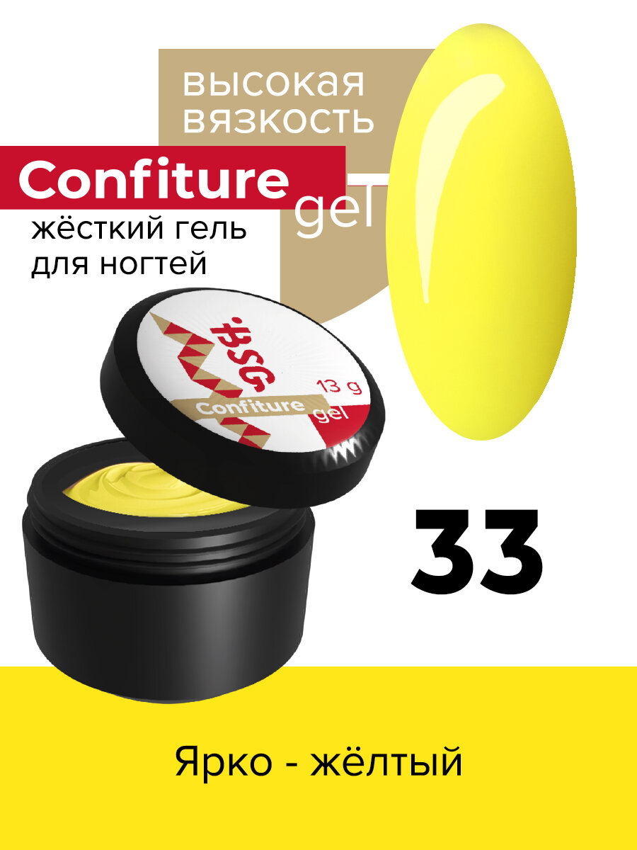 Купить BSG Жёсткий гель для наращивания Confiture №33 высокая вязкость - Ярко-жёлтый (13 г)