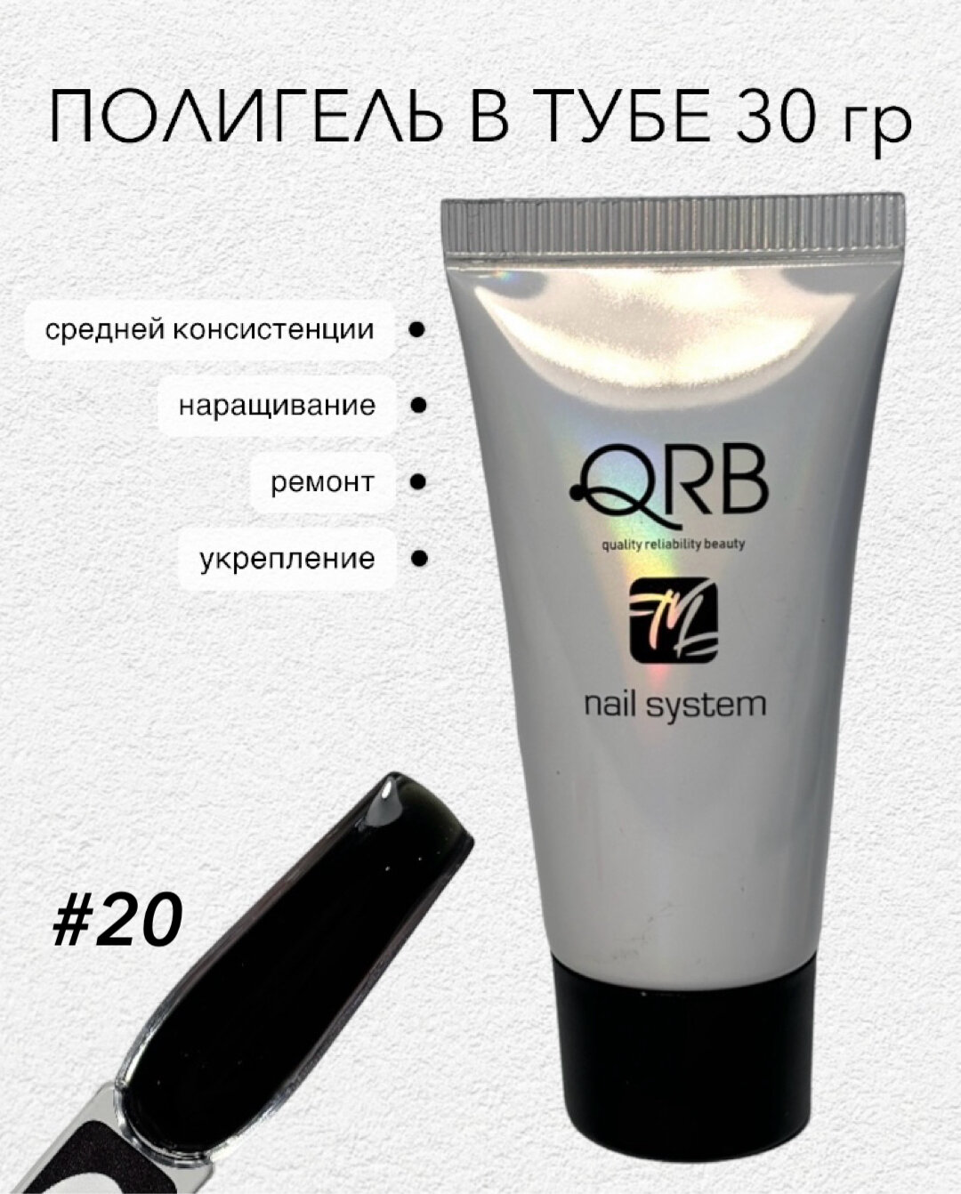 Купить Полигель акригель в тубе QRB для наращивания и моделирования ногтей № 20 черный, 30 гр