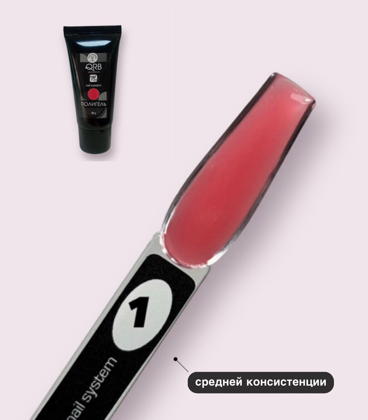 Купить Полигель акригель QRB для наращивания и моделирования ногтей № 1 розовый, 30 гр