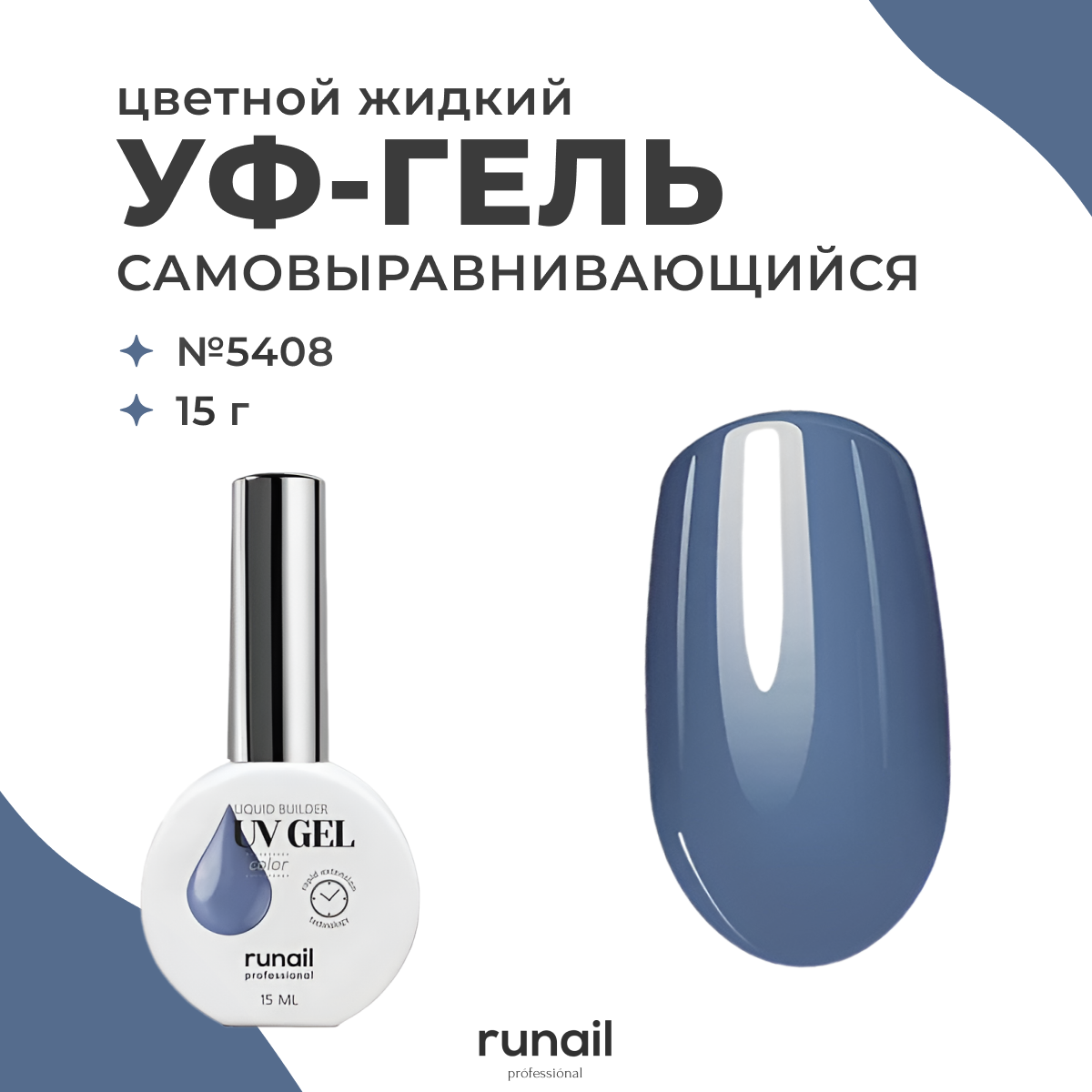 RuNail, цветной жидкий Уф-гель №5408, 15 мл