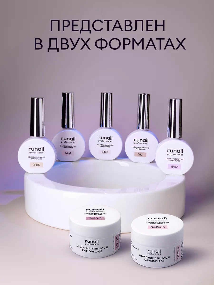 Runail, камуфлирующий жидкий Уф-гель самовыравнивающийся №5424 (Сияющая розовая карамель), 15 мл