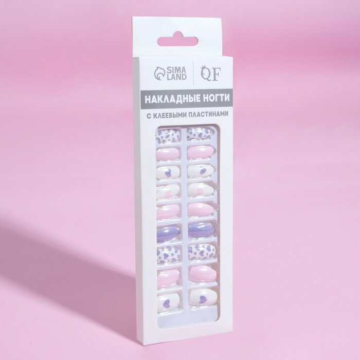 Накладные ногти, 24 шт, с клеевыми пластинами, форма миндаль, цвет белый/розовый/сиреневый (арт. 9718382)