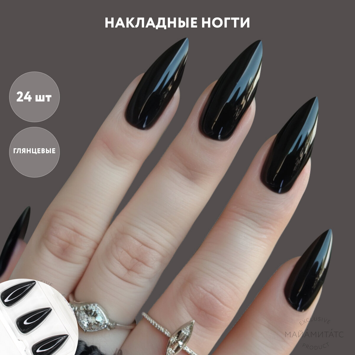 Купить MIAMITATS Накладные ногти черные GLOSS (Stiletto) Volcanic