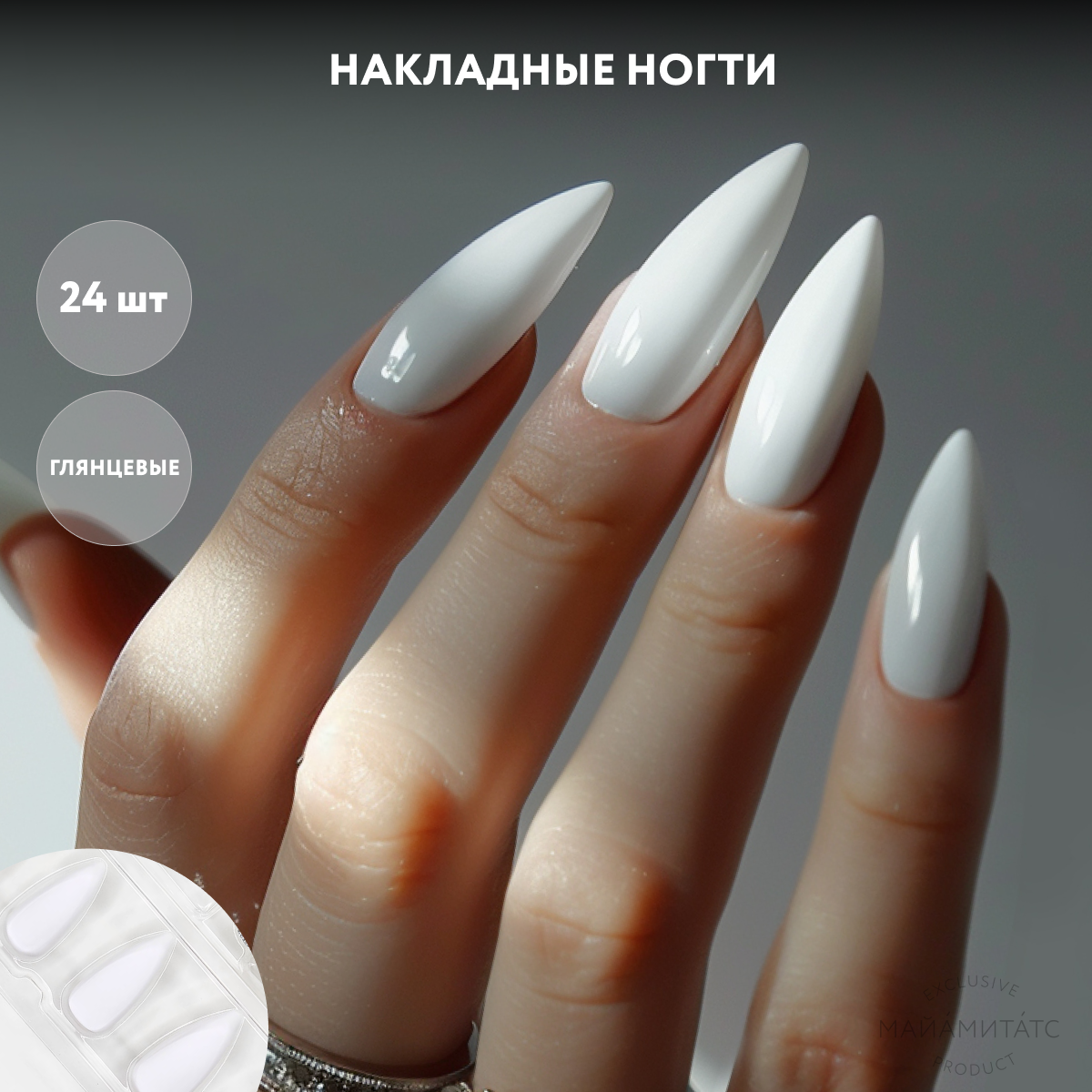Купить MIAMITATS Накладные ногти белые GLOSS (Stiletto) Polar