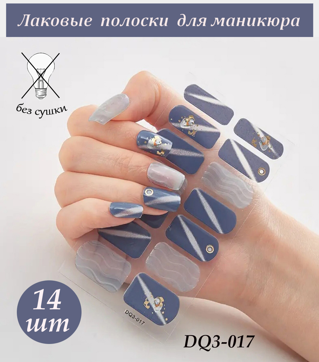 Купить Гелевые/Лаковые наклейки для быстрого маникюра, без сушки, 14шт, синяя бездна