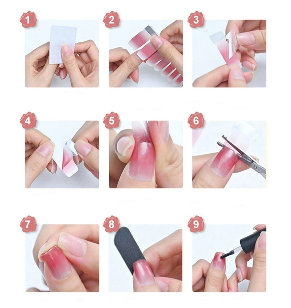 Гелевые/Лаковые наклейки для быстрого маникюра, без сушки, 14шт, вишнёвые