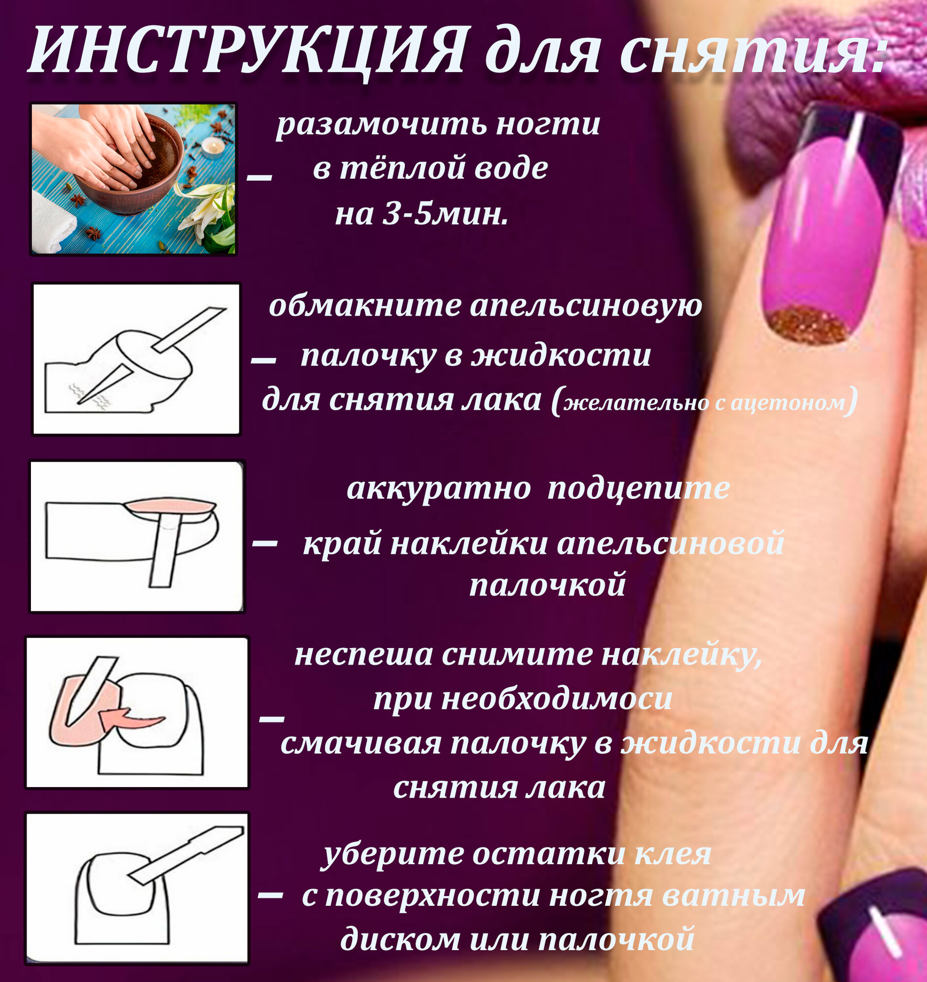 Гелевые/Лаковые наклейки для быстрого маникюра, без сушки, 14шт, фиолетовое созвездие