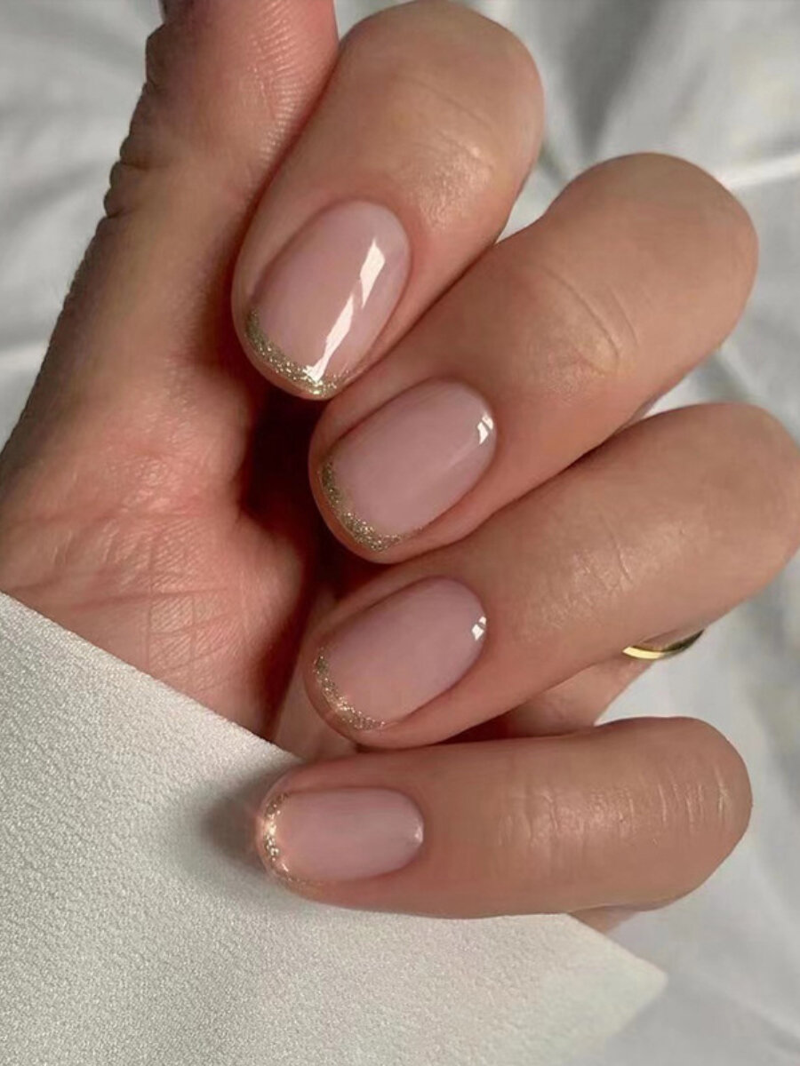 СохранитьНакладные ногти с клеем короткие френч золотистый y2k интересное: