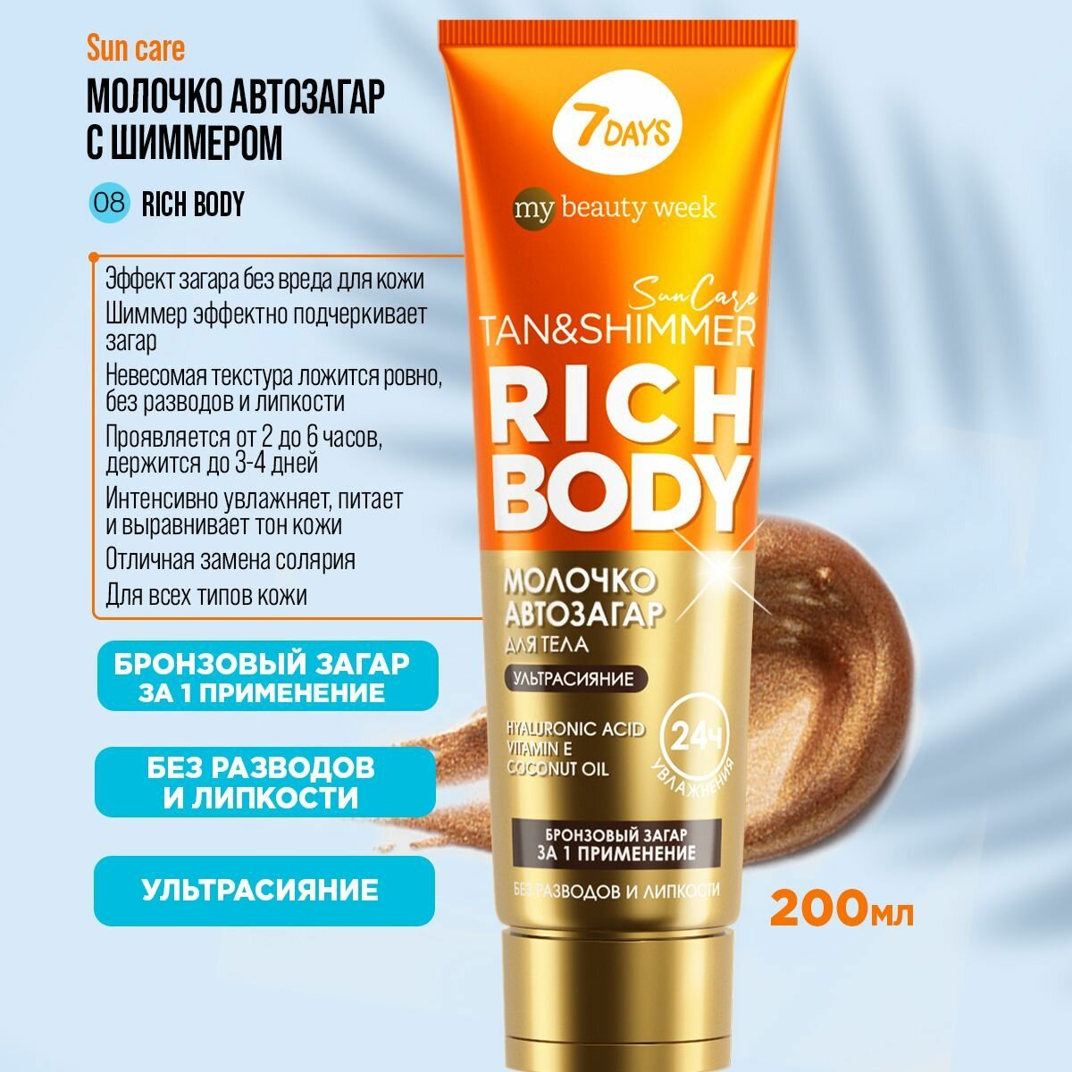 7DAYS Крем для тела, молочко для тела, автозагар SUN CARE RICH BODY