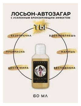 | Способ применения | Наносить лосьон-автозагар следует на сухую кожу. На более сухих участках кожи используй тонкий слой. Также можно предварительно нанести на эти участки питательное молочко, например на локти, колени, щиколотки. Если используешь перед сном, дай лосьону-автозагару впитаться и ложись спать минут через 20-30 после нанесения. Обязательно вымой руки после использования. |