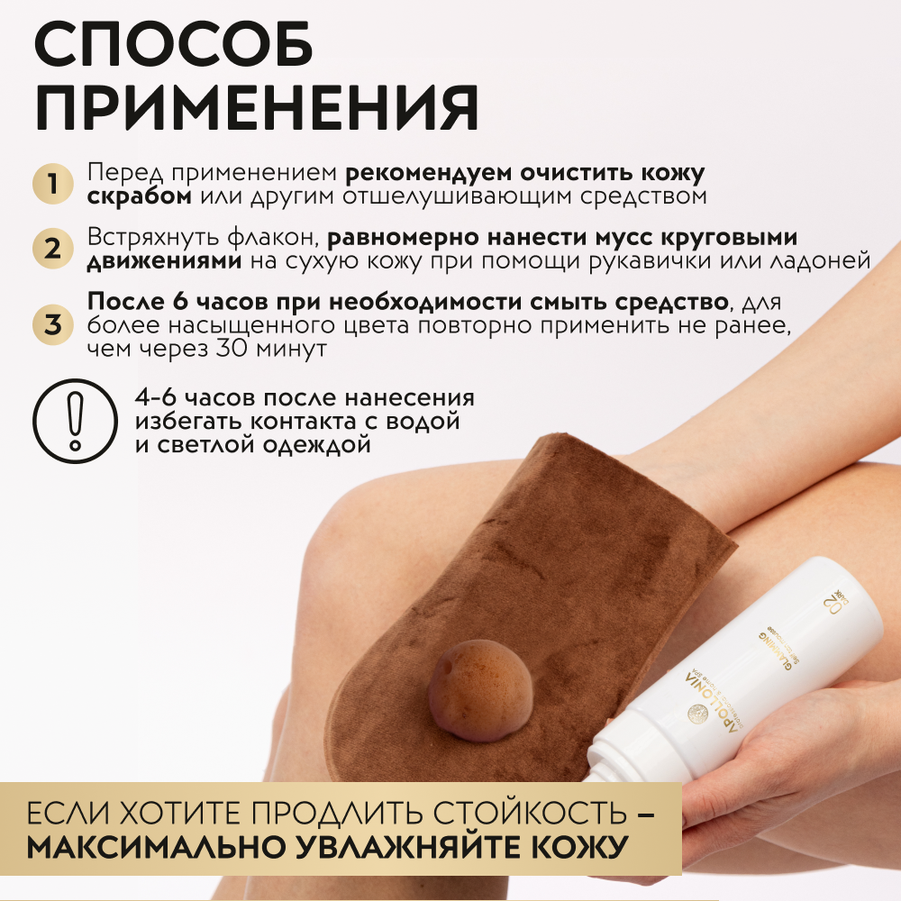 APOLLONIA Автозагар мусс для тела увлажняющий для смуглой кожи, тон 02, 150 мл интересное: