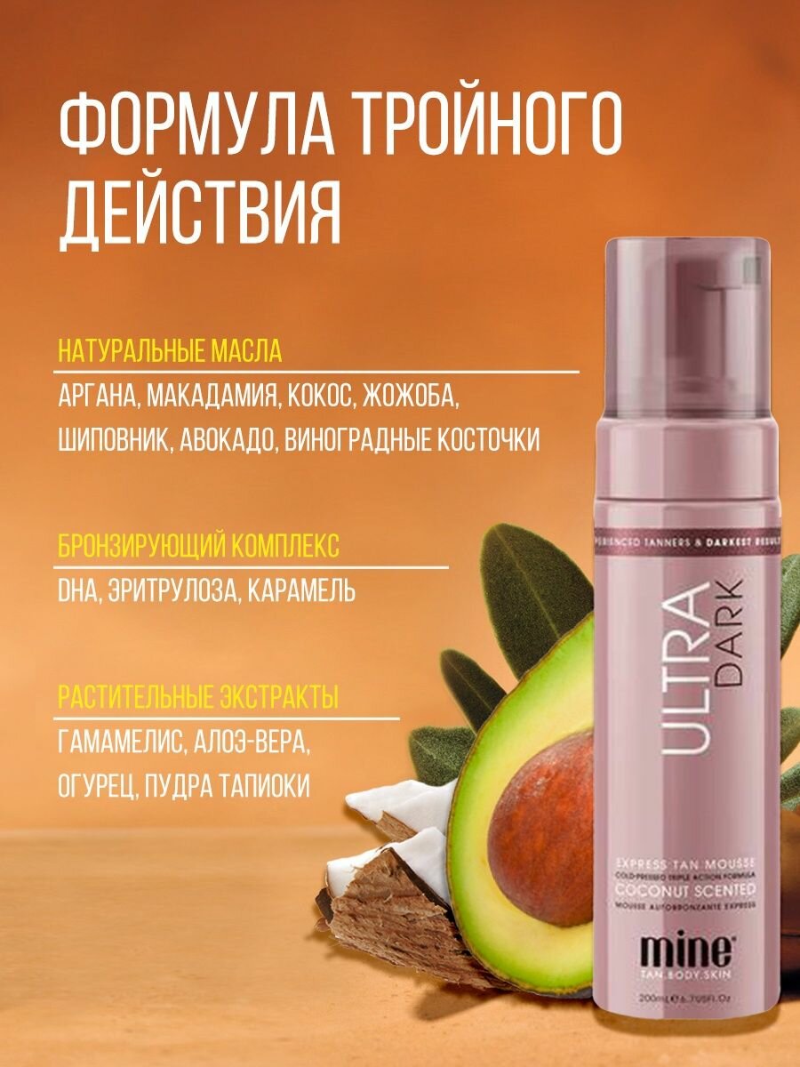 MINE TAN, Классический мусс-автозагар с натуральным, пепельно-коричневым оттенком Dark Ash Self Tan, 200 мл
