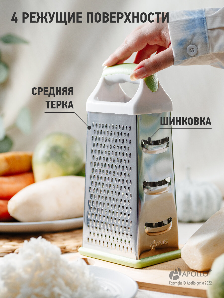 Тёрка для овощей четырехгранная, 4-х сторонняя Apollo "Regina" 23.5 см салатовый