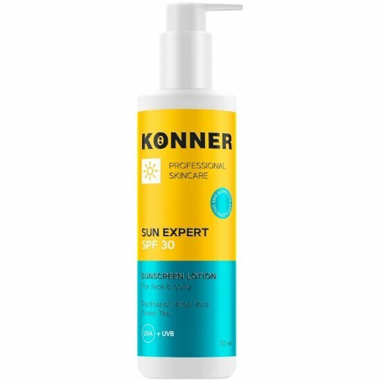 KONNER Крем от загара, SUN EXPERT SPF 30, солнцезащитный, увлажняющий с алоэ вера и пантенолом, для лица и тела, защитный крем от солнца, 150 мл интересное: