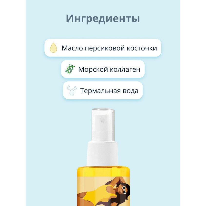 | Состав | Aqua, Camellia Sinensis Flower Water, Prunus Persica Kernel Oil, Octocrylene, Ethylhexyl Methoxycinnamate, Ethylhexyl Salicylate, Butyl Methoxydibenzoylmethane, Benzophenone-3, Prunus Amygdalus Dulcis Oil, Ethylhexyl Stearate, Macadamia Ternifolia Seed Oil, Collagen, Hyaluronic Acid, Benzophenone-4, Benzyl Alcohol, Polyquaternium-37, Parfum, Beta-Carotene, CI 75130. |