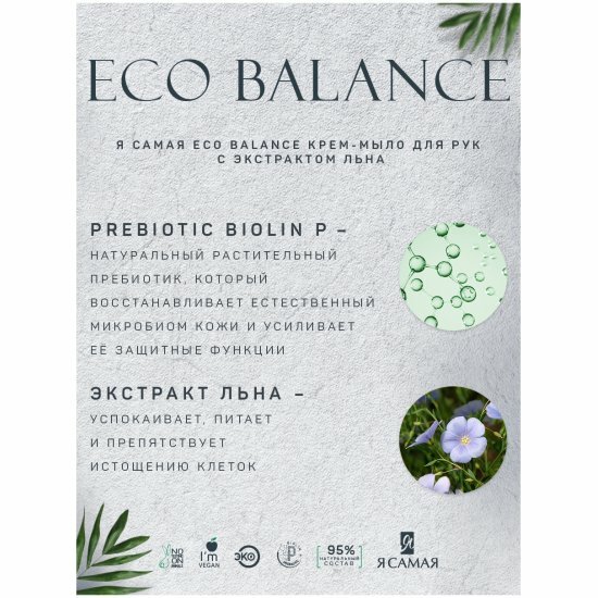 Жидкое мыло Я самая ECO BALANCE 250мл Крем-мыло с экстрактом льна флакон/дозатор интересное: