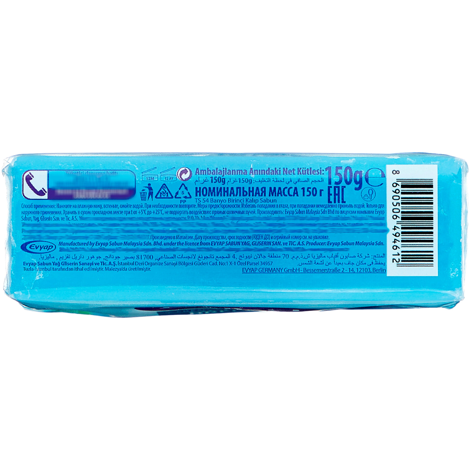 | Состав | sodium palmate, sodium palm kernelate, aqua, palm kernel acid, sodium chloride, glycerin, propylene glycol, maris sal, algae extract, fucus vesiculosus extract, coumarin, limonene, cl 74160, cl 77289, cl 77491 |