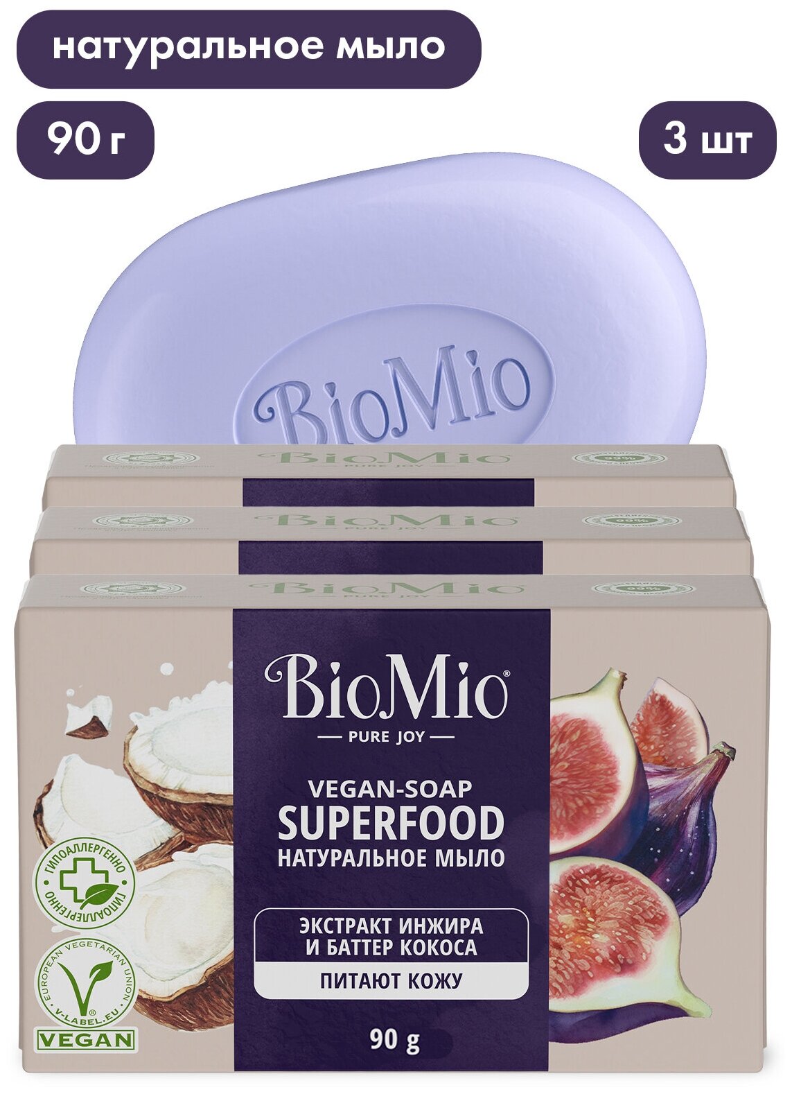 BioMio BIO-SOAP Натуральное мыло. Инжир и кокос (x3), 90 г интересное: