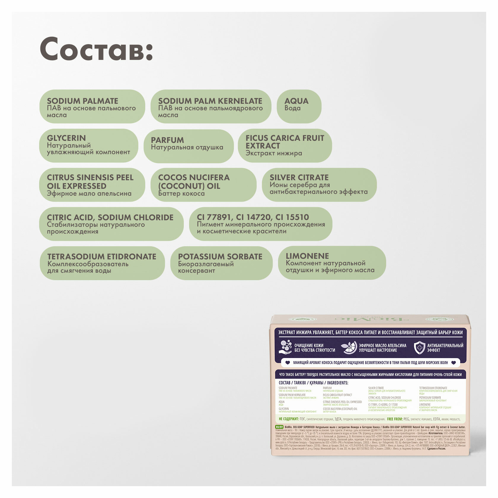 | Дополнительная информация | не содержит: ПЭГ, синтетические отдушки, ЭДТА |
