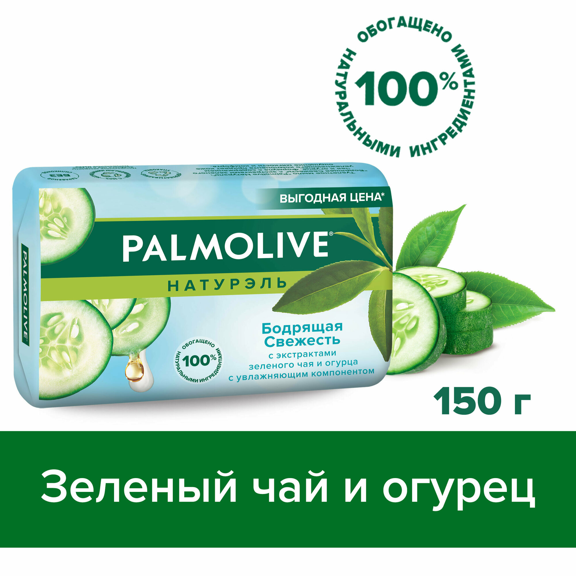 Palmolive Мыло кусковое Натурэль Бодрящая свежесть с экстрактами зеленого чая и огурца, 150 г