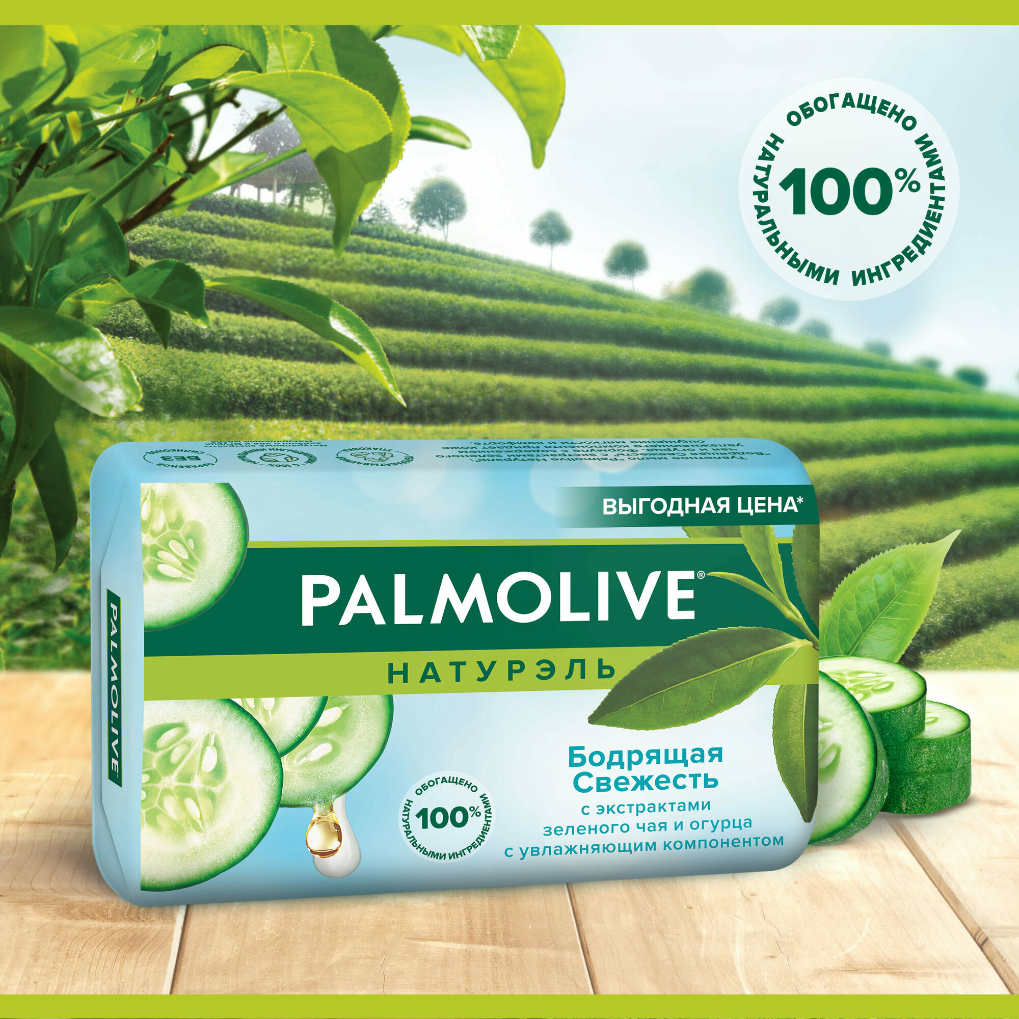 Мыло туалетное Palmolive Натурэль Бодрящая Свежесть, с экстрактами зеленого чая и огурца, 6 шт по 90 г